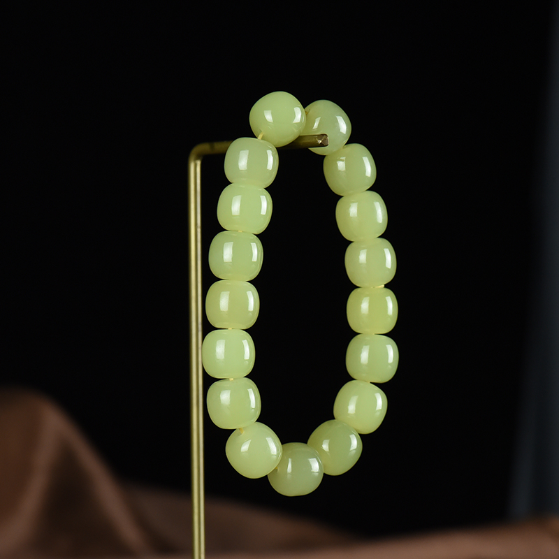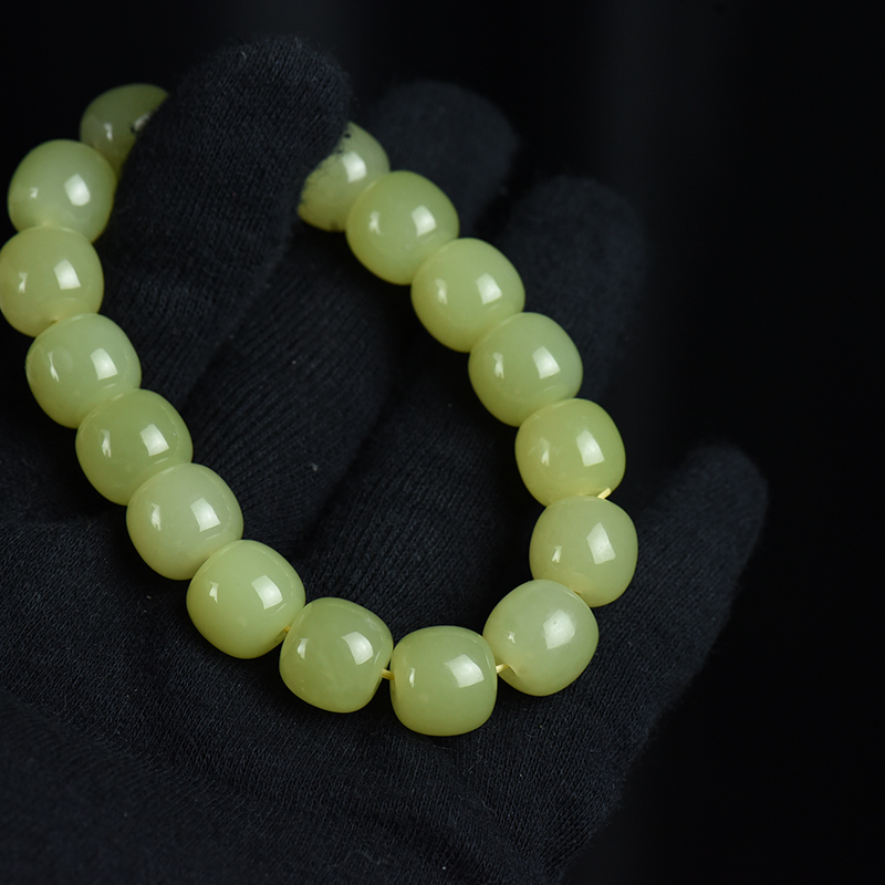 • [名  称] 山料和田黄玉老形珠单圈手串