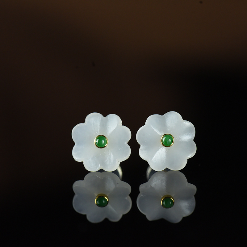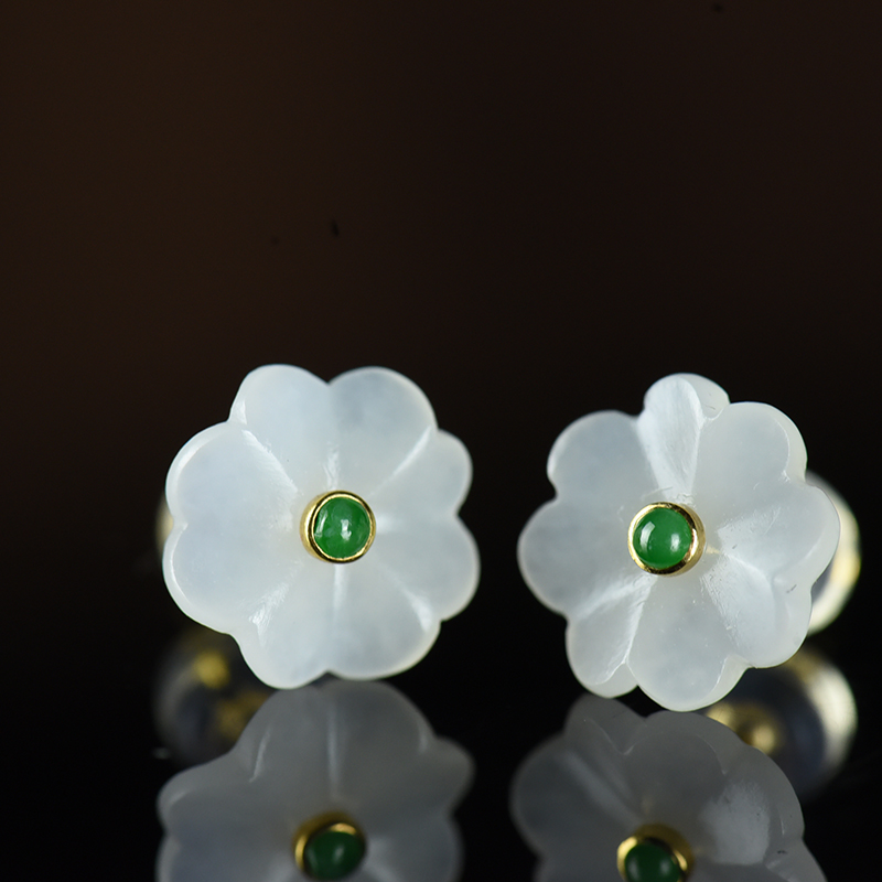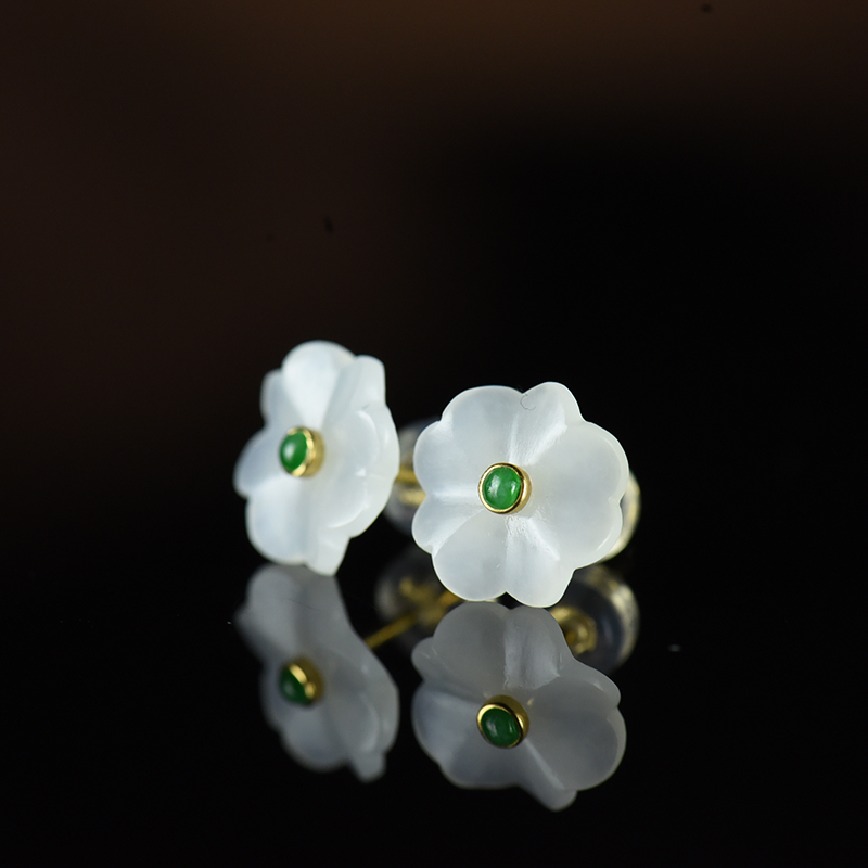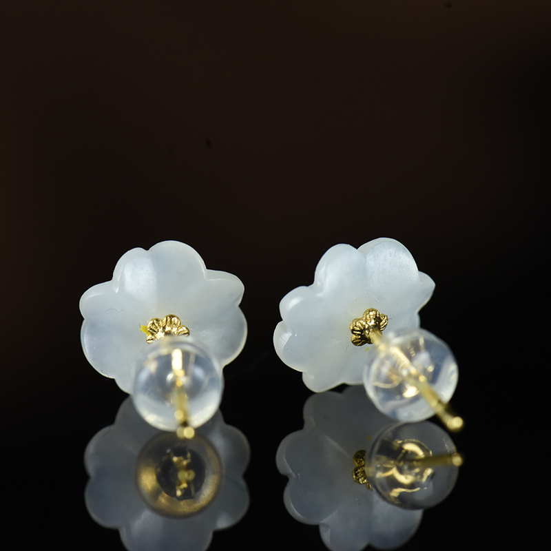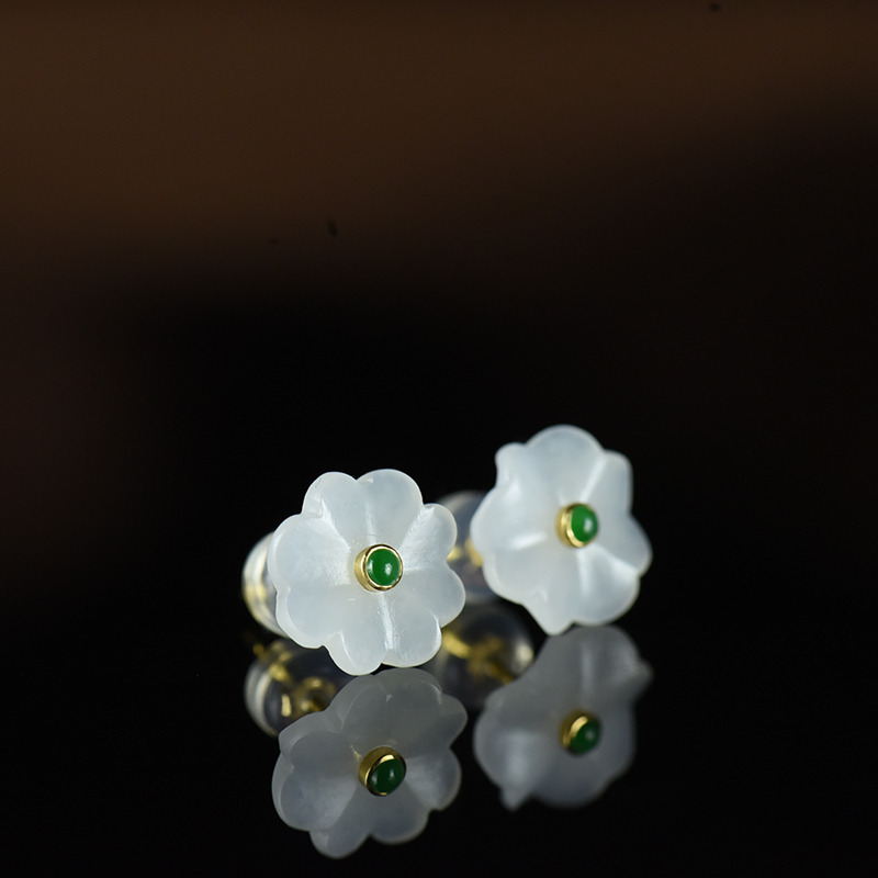 • [名  称] 18K籽料和田白玉繁花耳钉