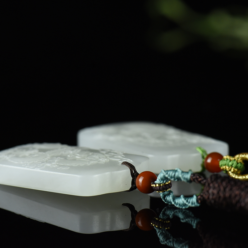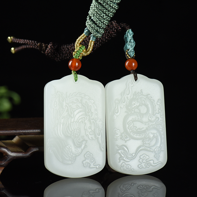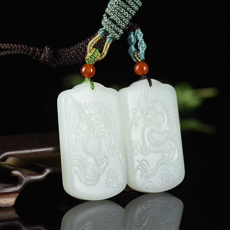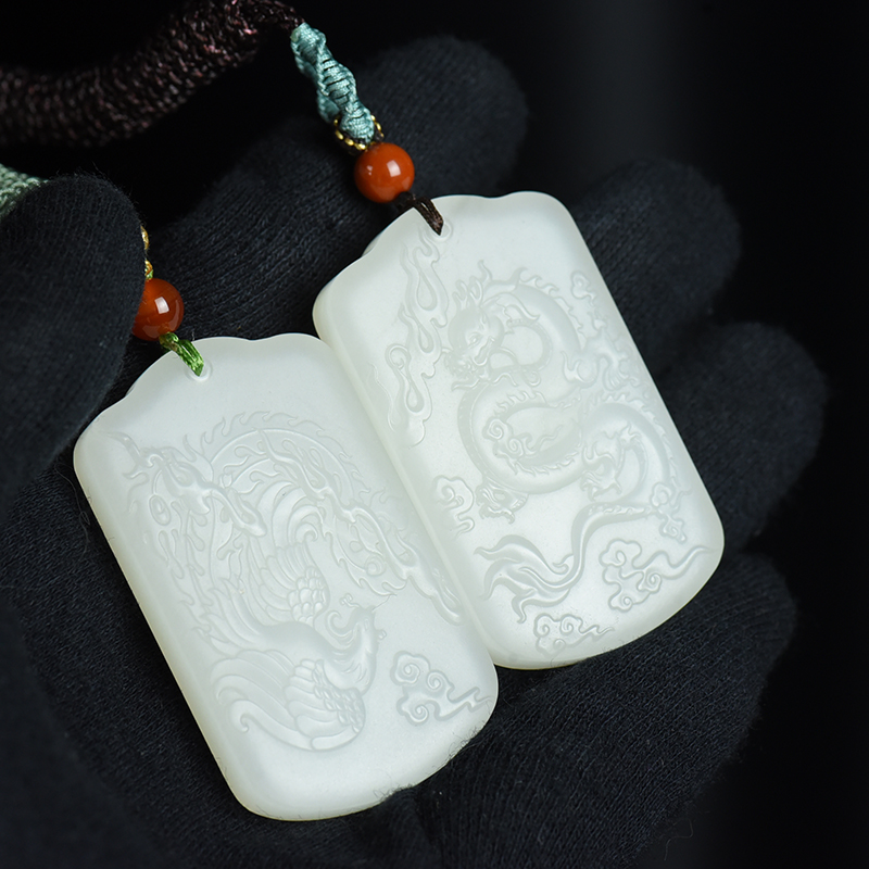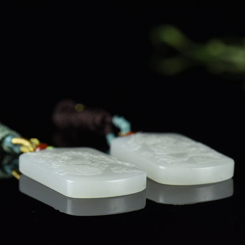• [名  称] 和田羊脂白玉龙凤对牌吊坠(二件)
