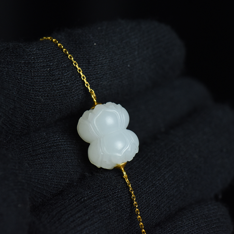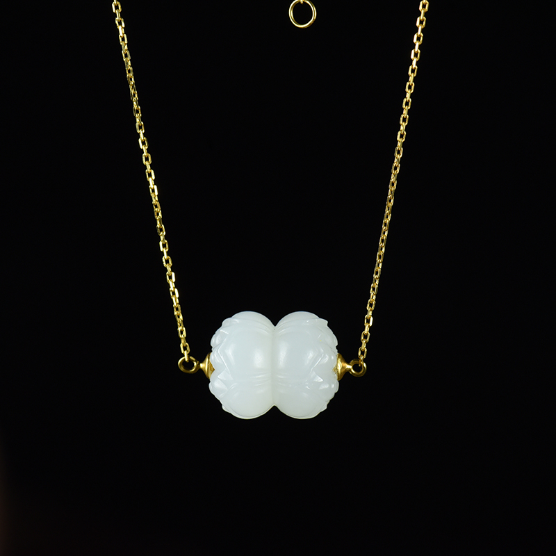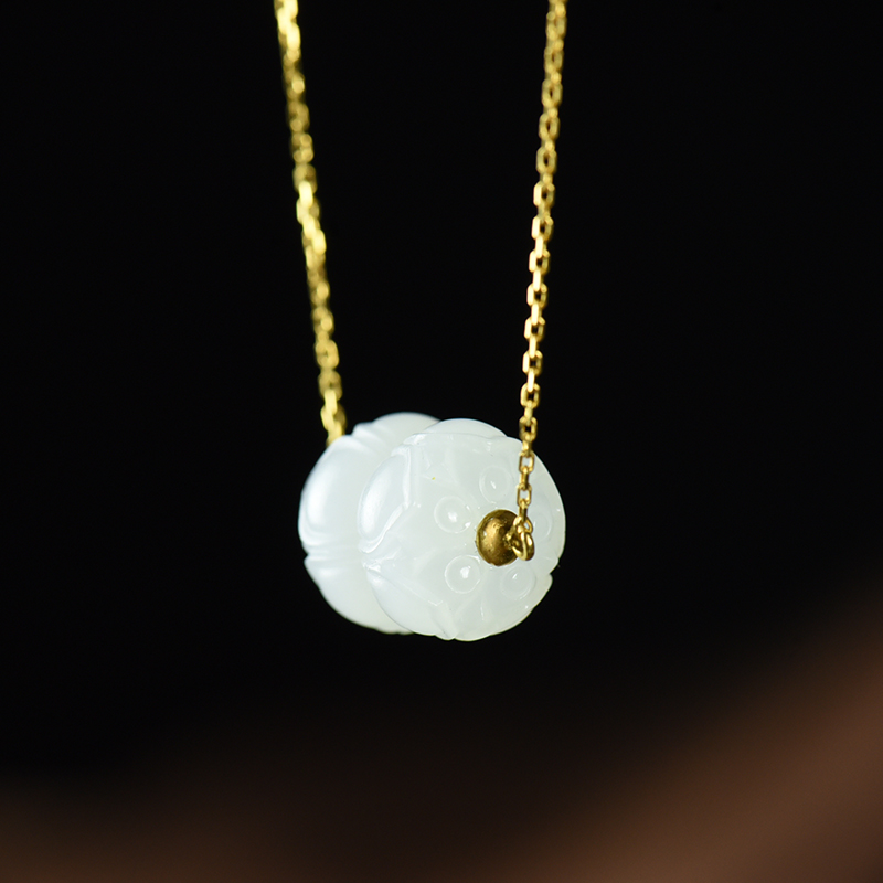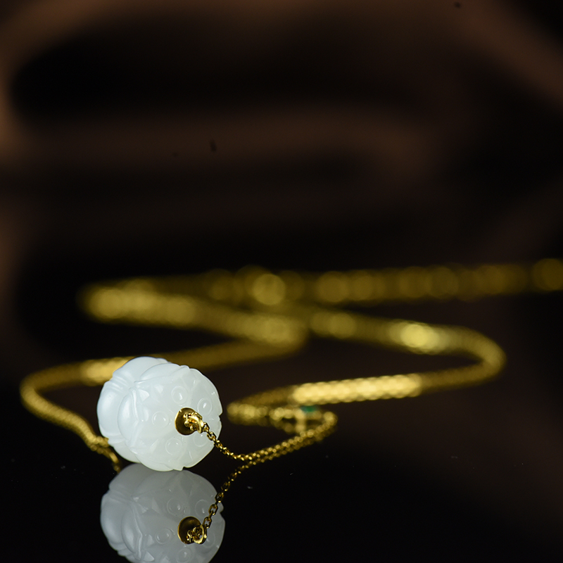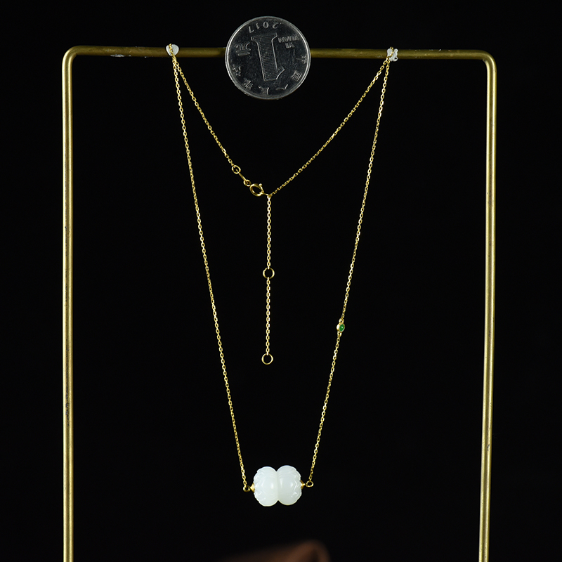 • [名  称] 18K籽料和田白玉并蒂莲锁骨链