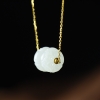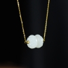 • 18K籽料和田白玉并蒂莲锁骨链
