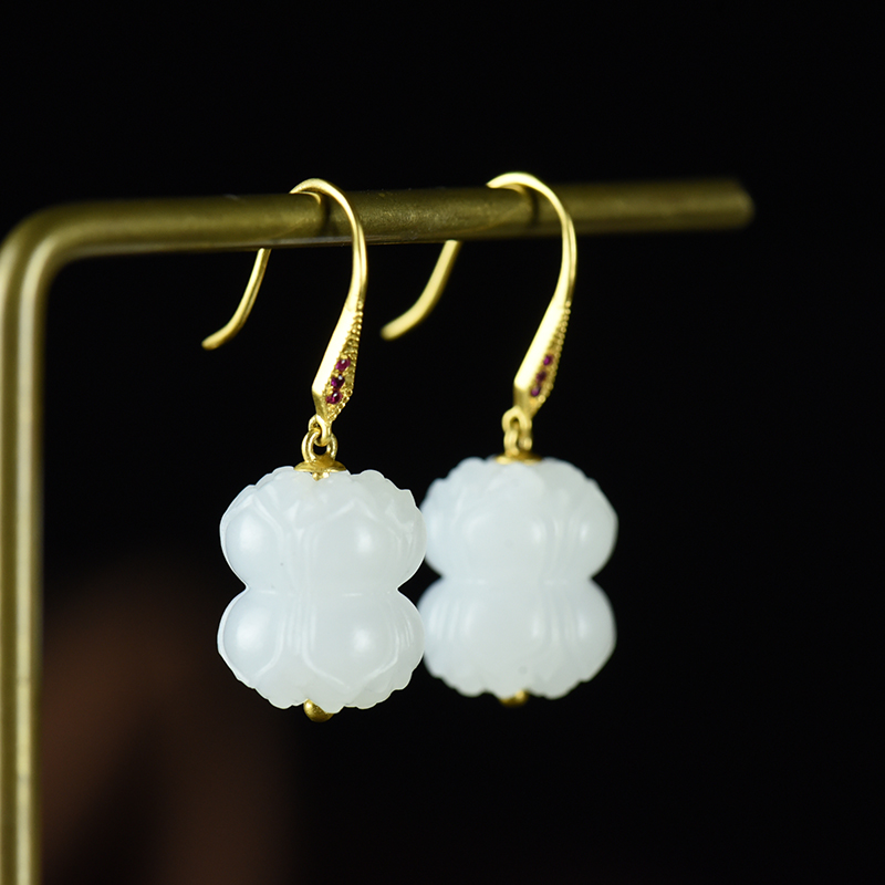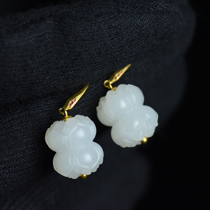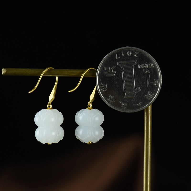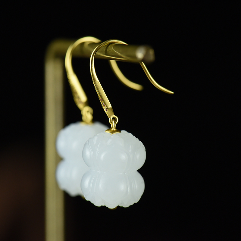• [名  称] 18K籽料和田白玉并蒂莲耳坠