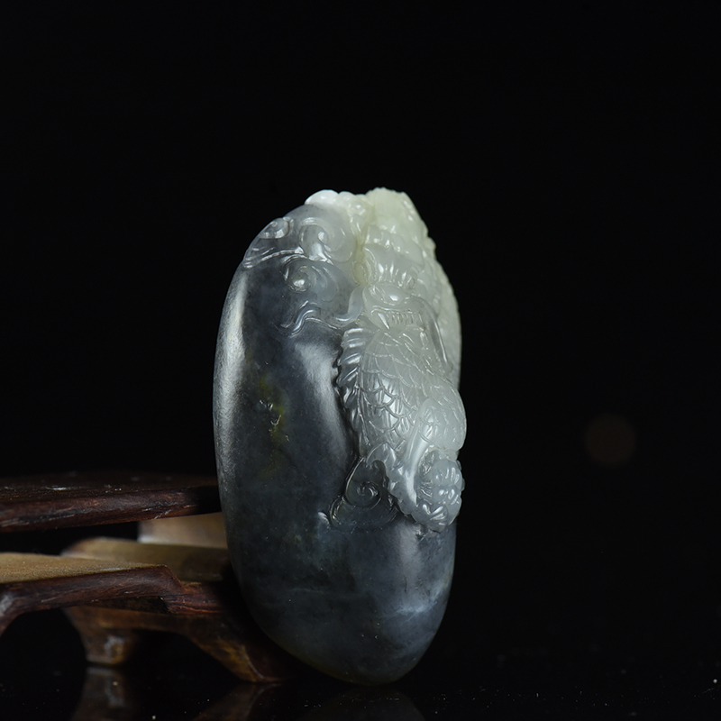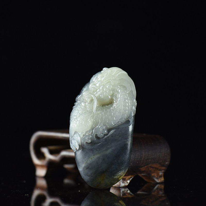 • 籽料和田玉青花飞龙在天吊坠