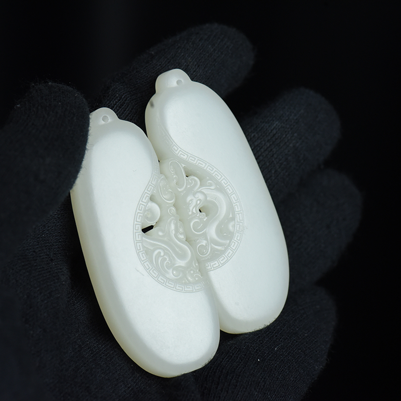 • [名  称] 山料和田白玉龙凤对牌吊坠(二件)
