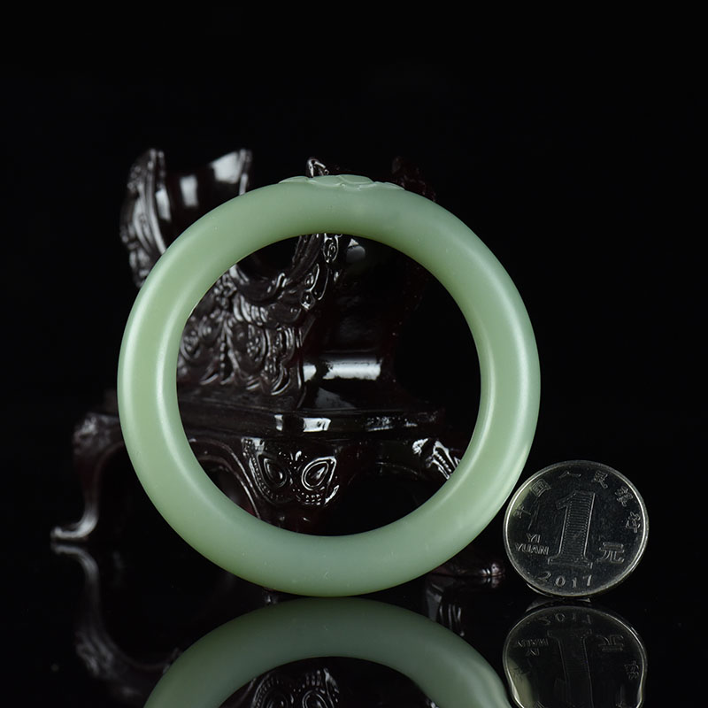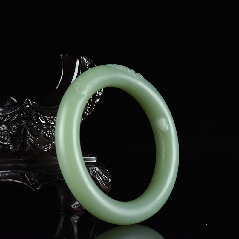 • [名  称] 52mm山料和田碧玉莲莲有鱼圆镯