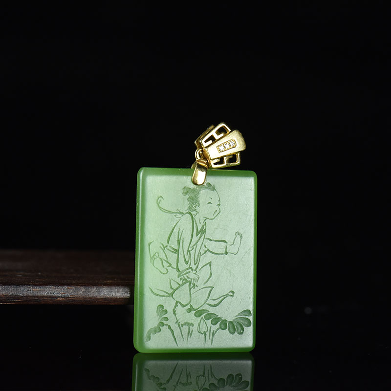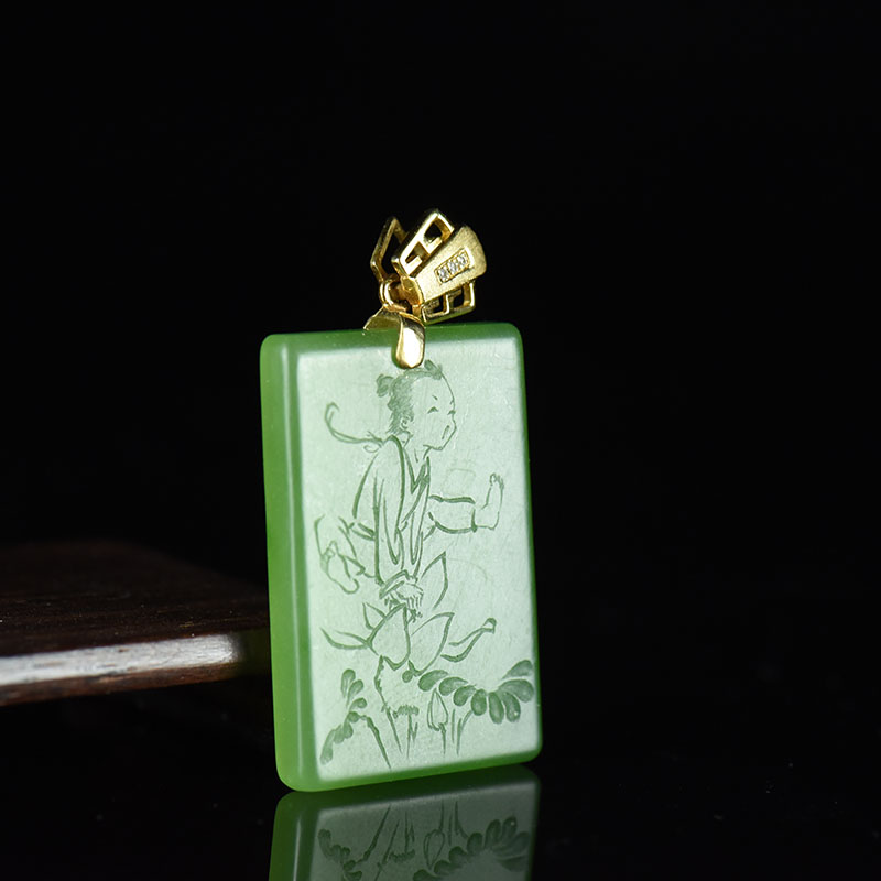 • 18K山料和田碧玉风之子吊坠
