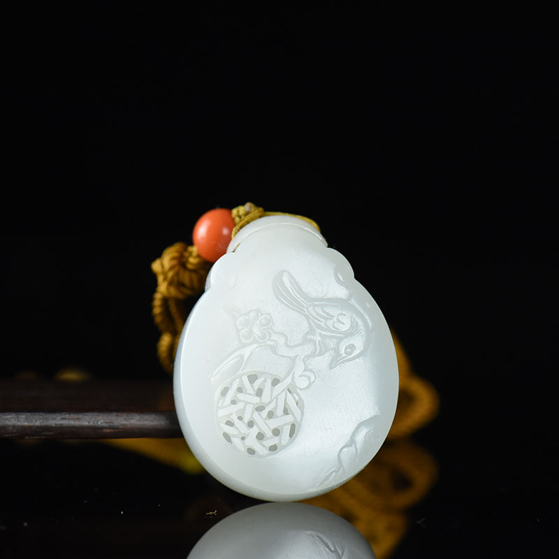 • 籽料和田白玉喜上眉梢香囊吊坠