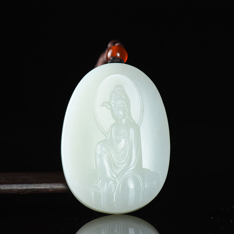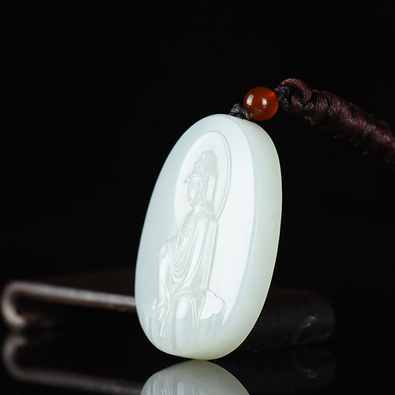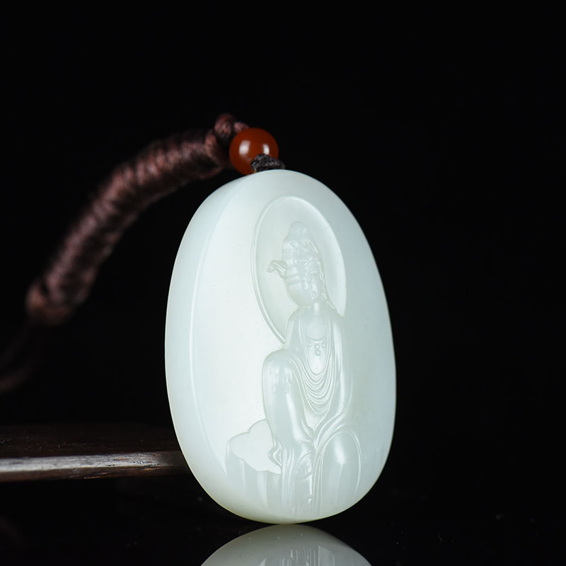 • 籽料和田白玉观音吊坠