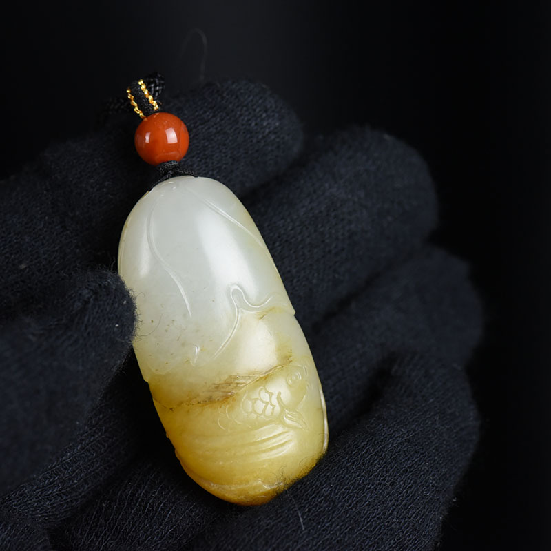 • 籽料和田白玉年年有余吊坠