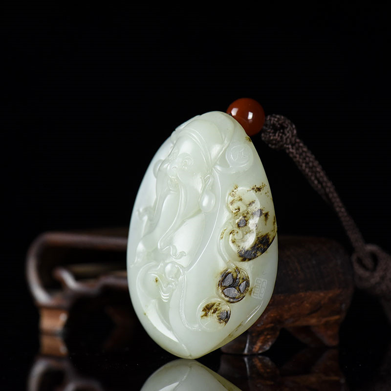 • 籽料和田白玉财神吊坠