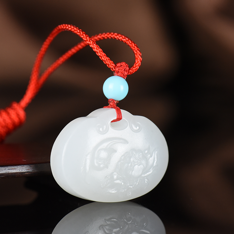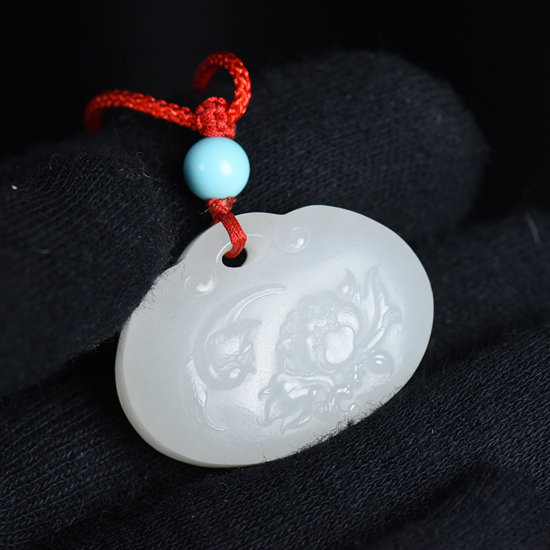 • [名  称] 山料和田白玉花开富贵平安锁吊坠