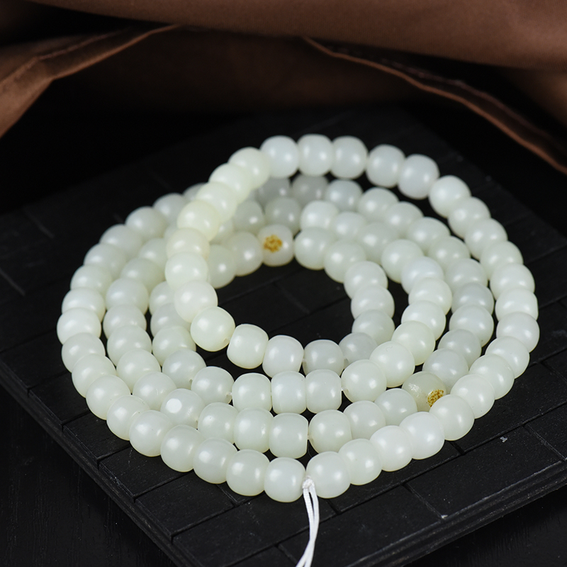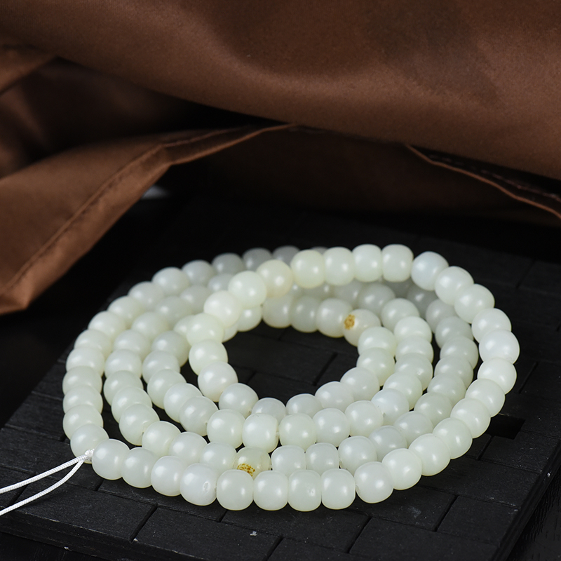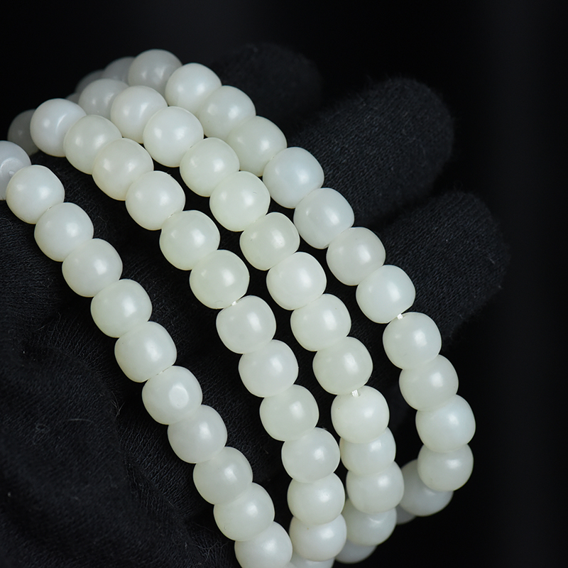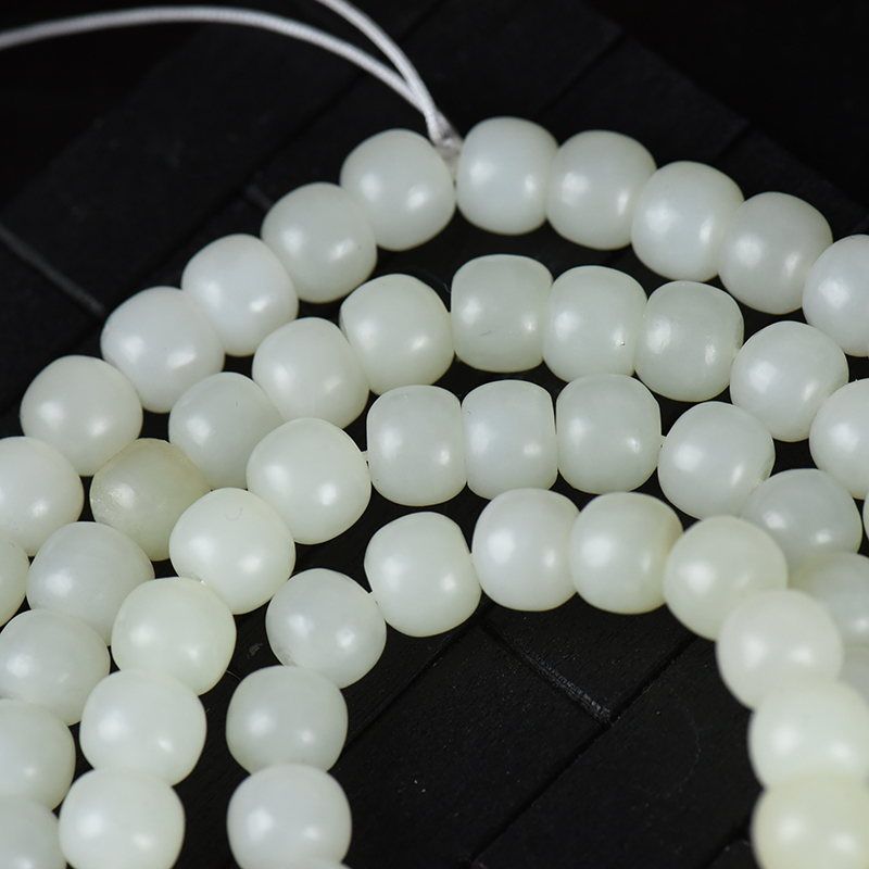 • [名  称] 籽料和田白玉老形珠单圈手串