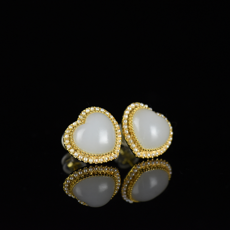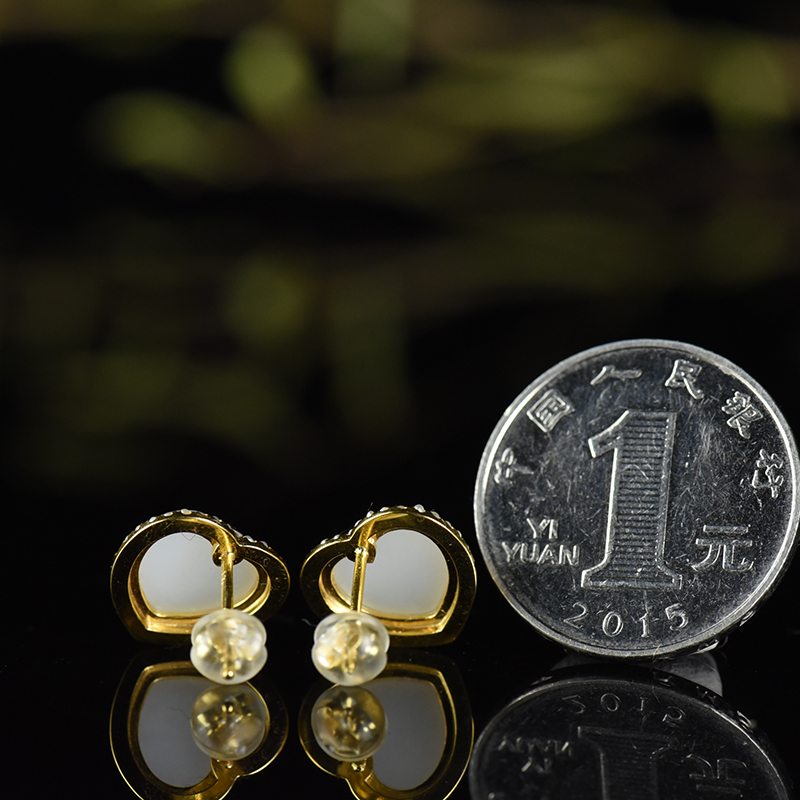 • [名  称] 18K籽料和田白玉爱心耳钉