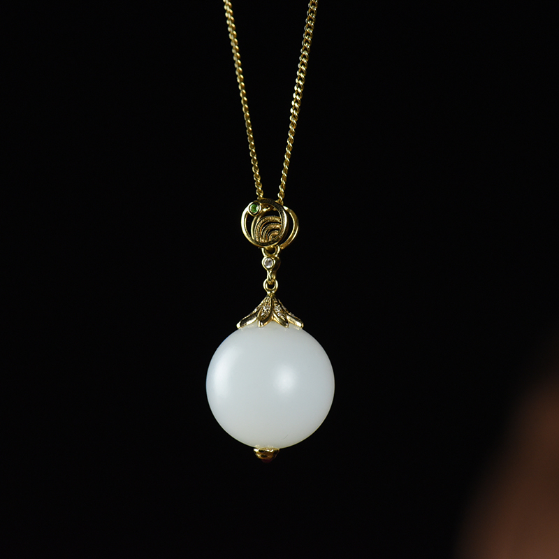 • 18K籽料和田白玉吊坠