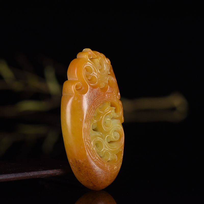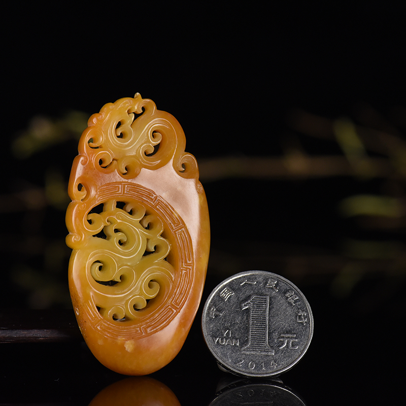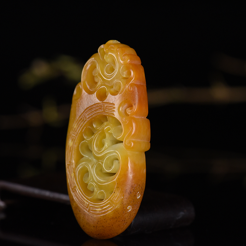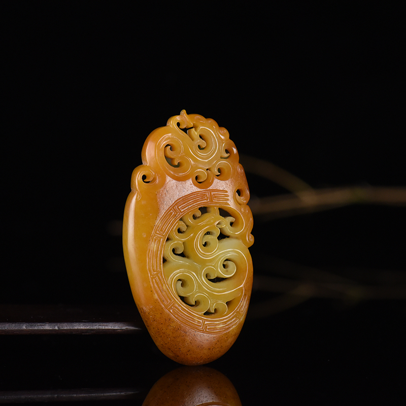 • [名  称] 籽料和田玉黄沁龙凤吊坠