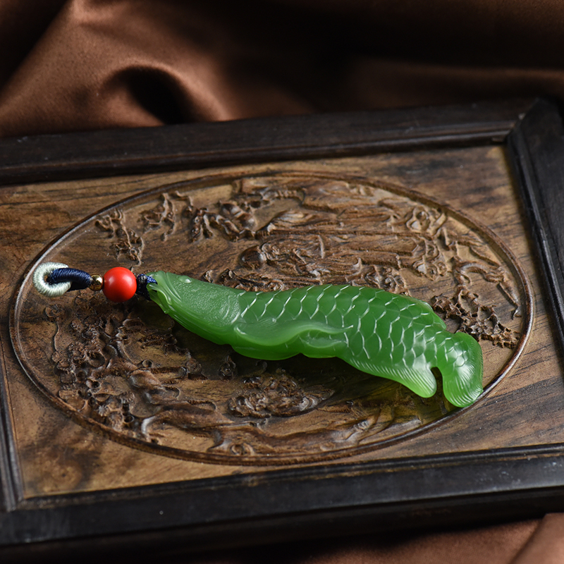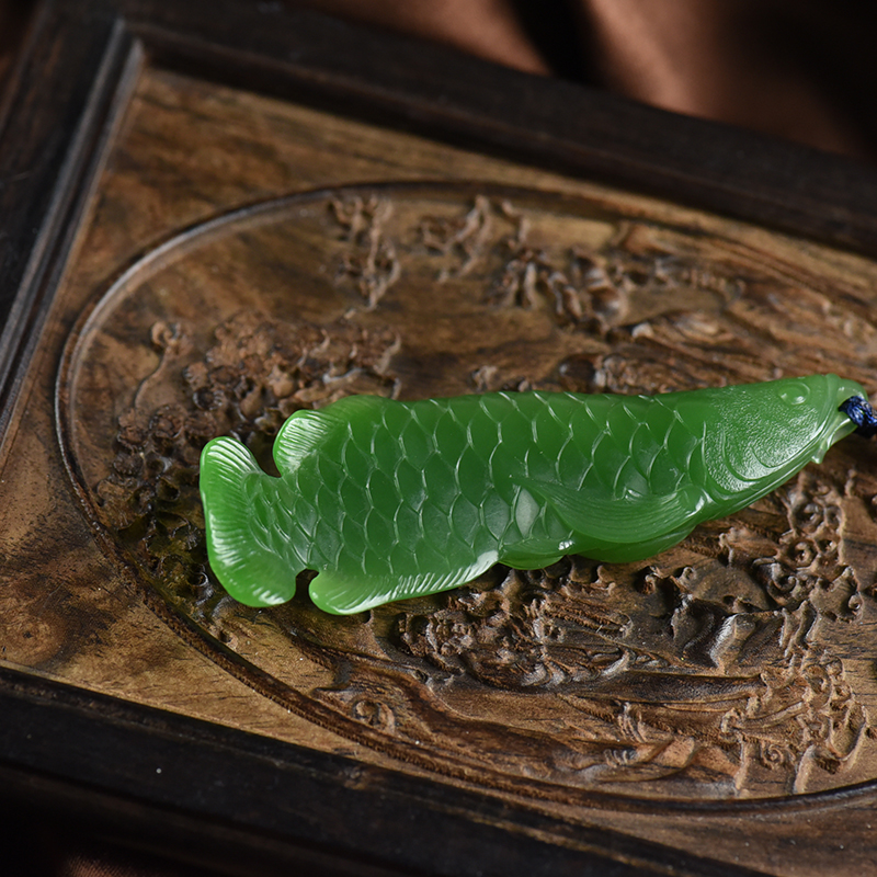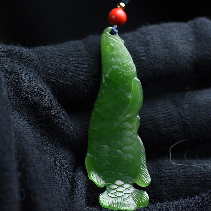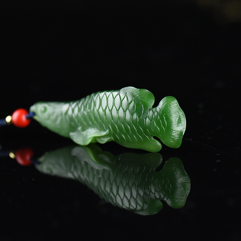 • 山料和田碧玉金龙鱼吊坠