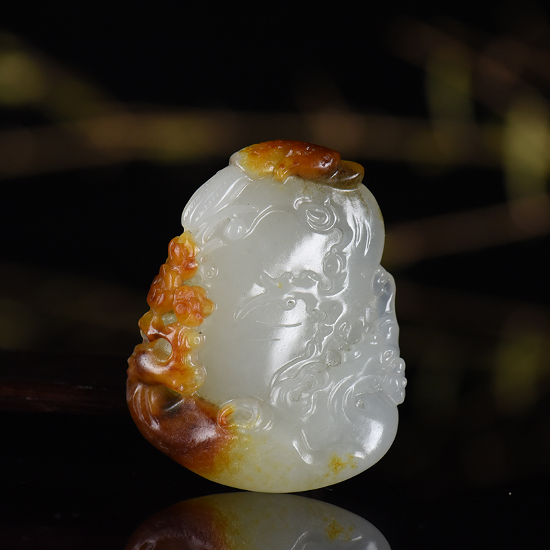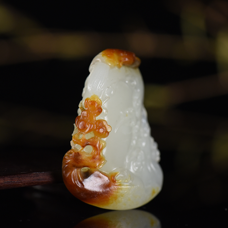 • 籽料和田白玉喜上眉梢吊坠