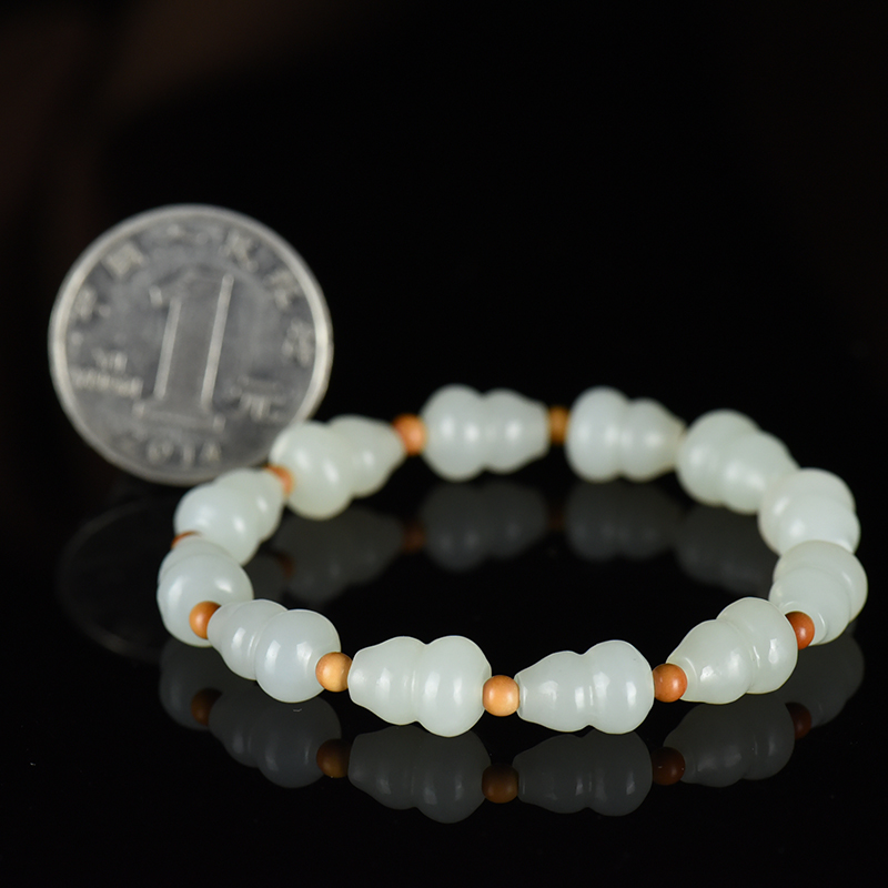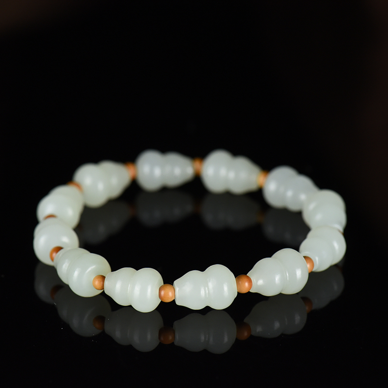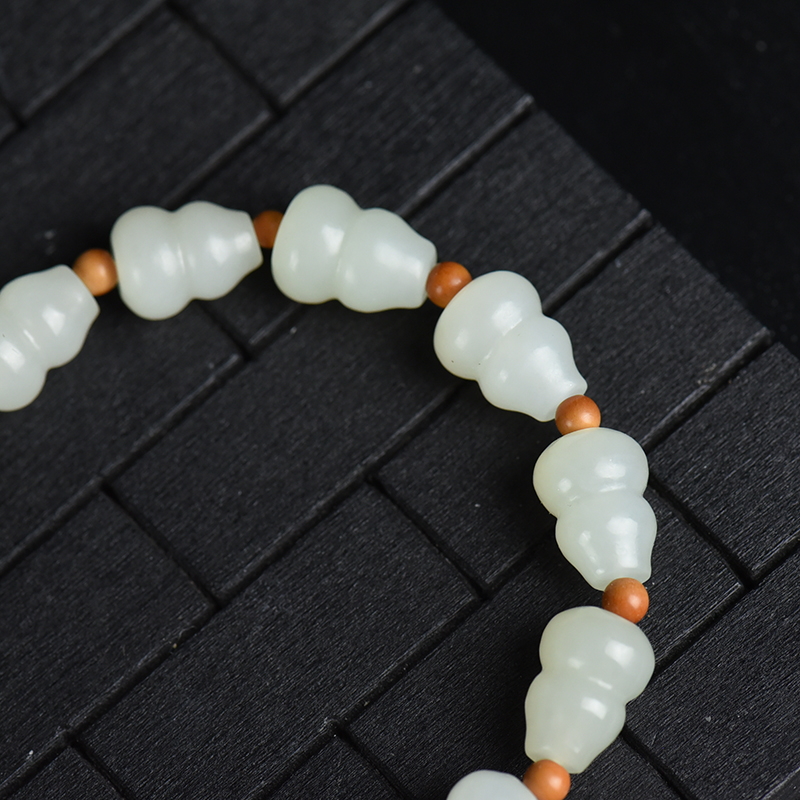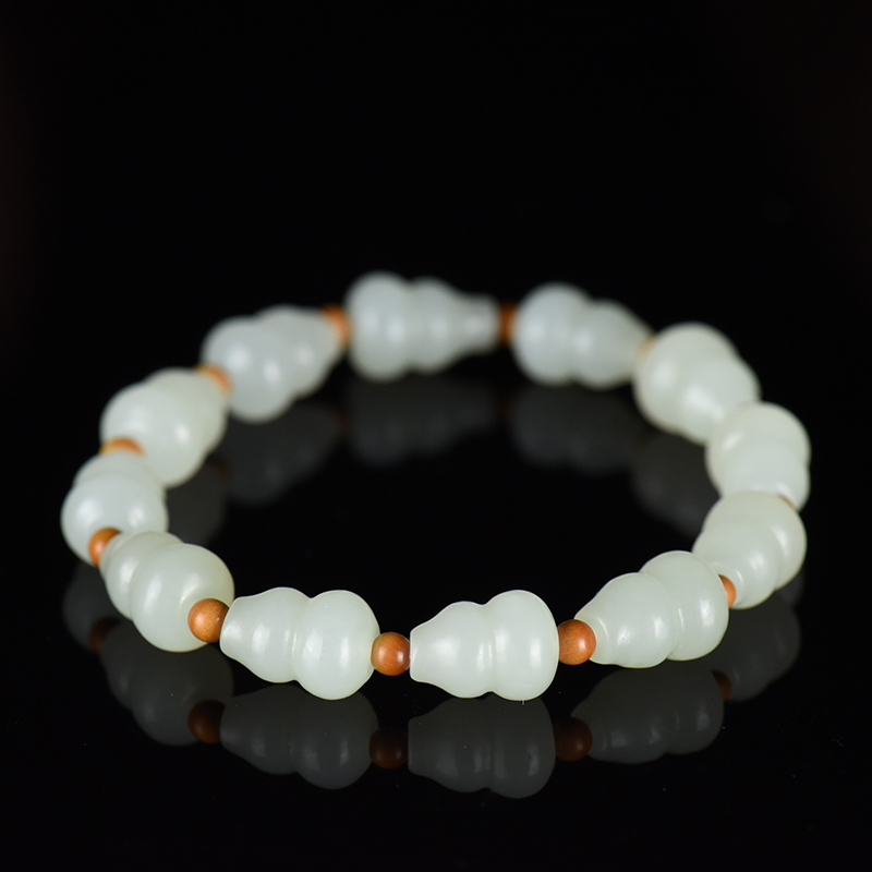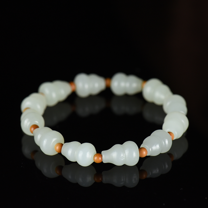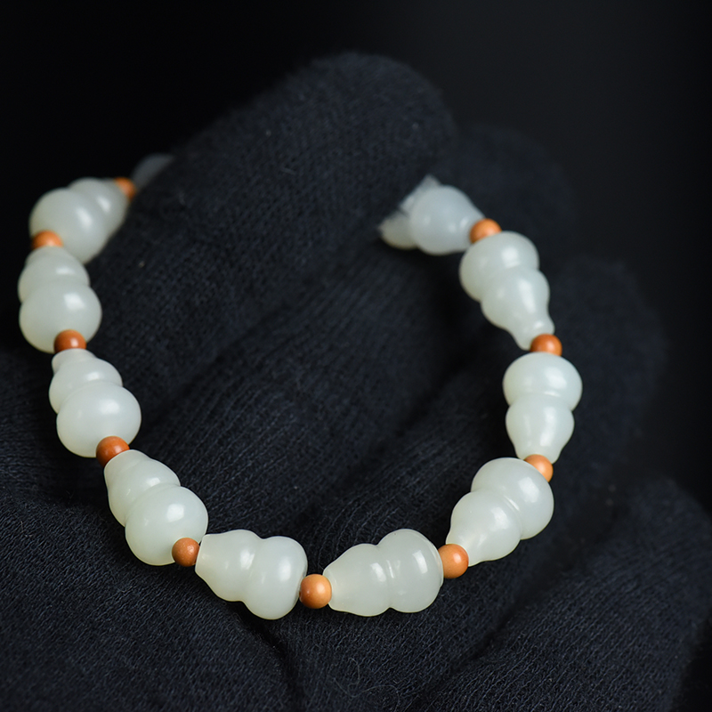 • 籽料和田白玉葫芦单圈手串
