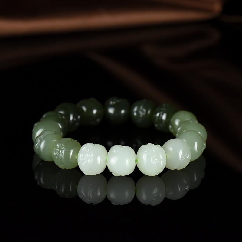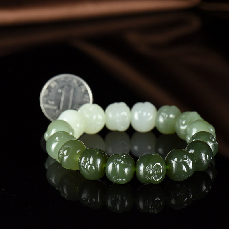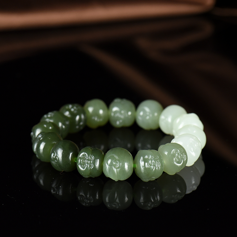 • [名  称] 山料和田青玉渐变佛头单圈手串
