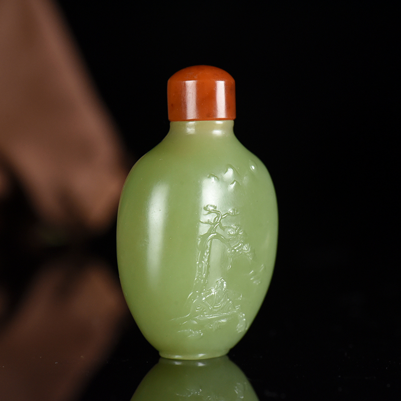 • [名  称] 山料和田黄玉高山流水鼻烟壶手把件