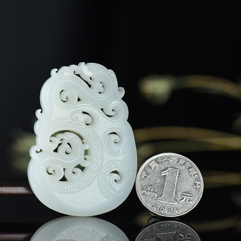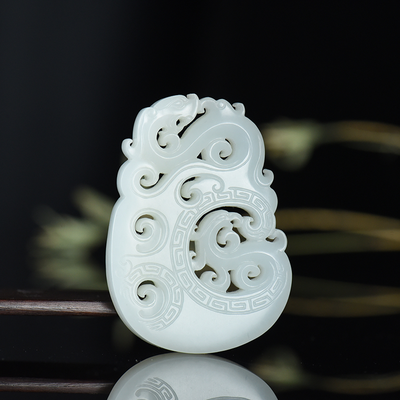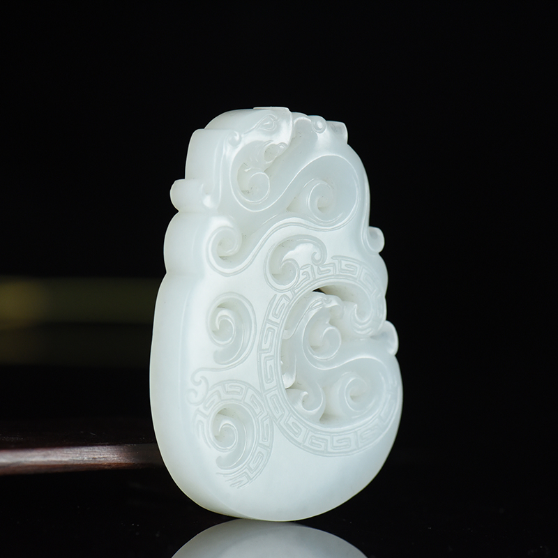 • 籽料和田白玉龙凤牌吊坠