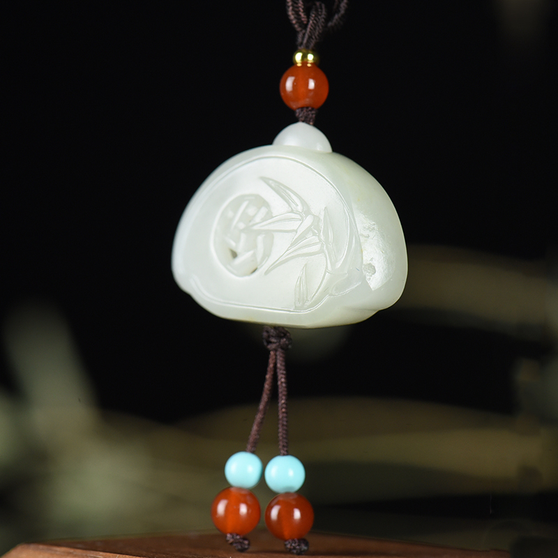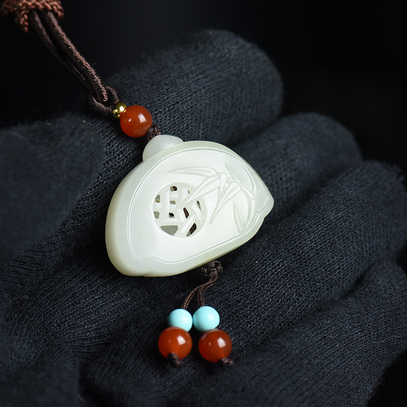 • [名  称] 山流水料和田白玉竹节香囊吊坠