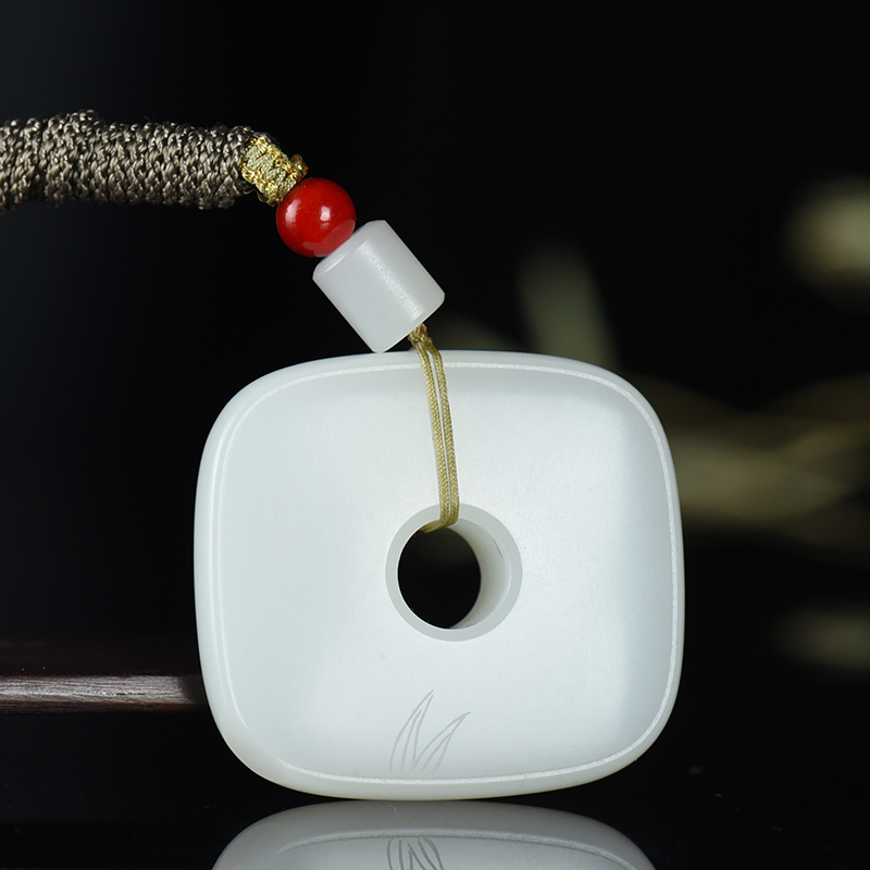 • 籽料和田白玉方平安扣吊坠
