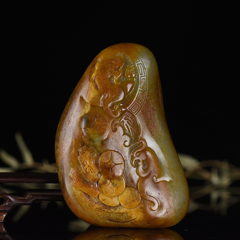 • [名  称] 籽料和田玉龙凤呈祥手把件