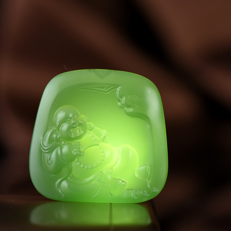 • 山料和田碧玉猫眼弥勒佛吊坠
