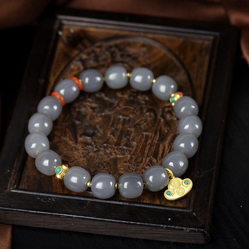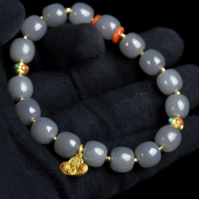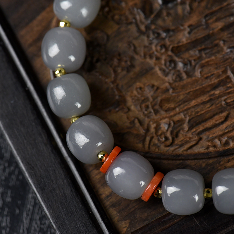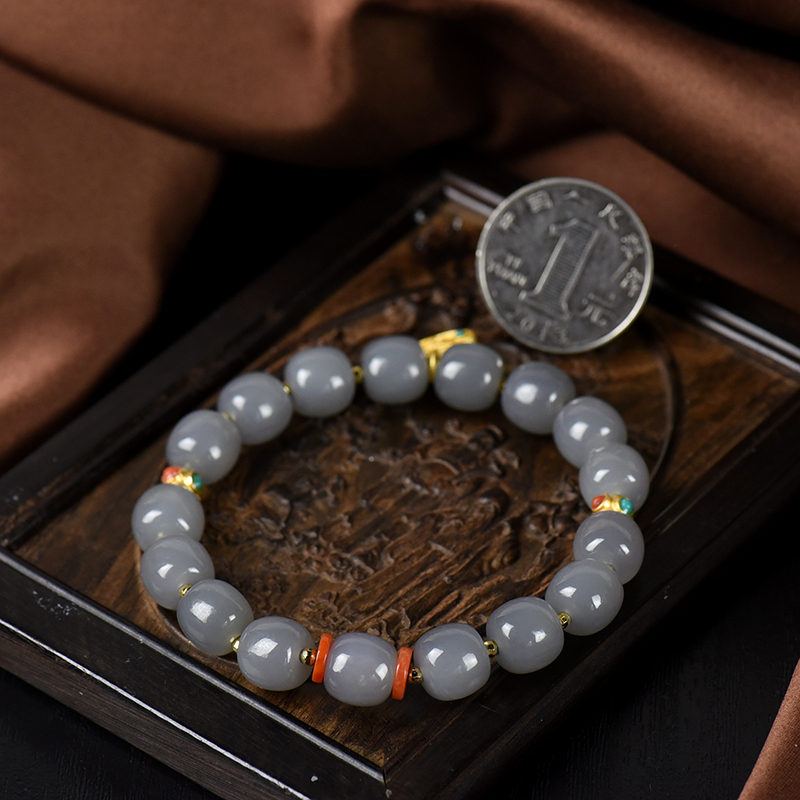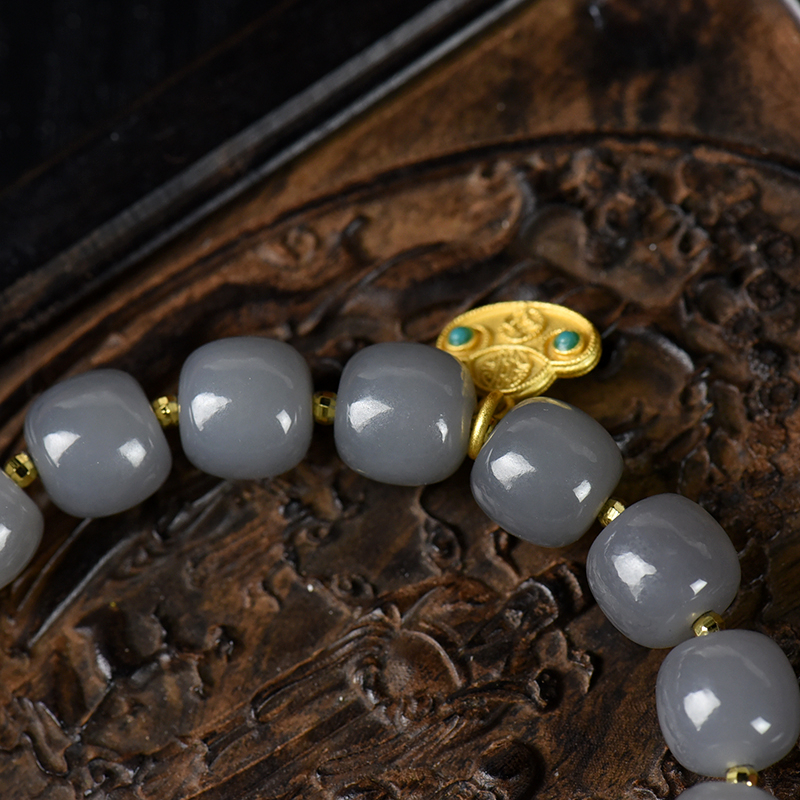 • [名  称] 山料和田烟青玉老形珠单圈手串