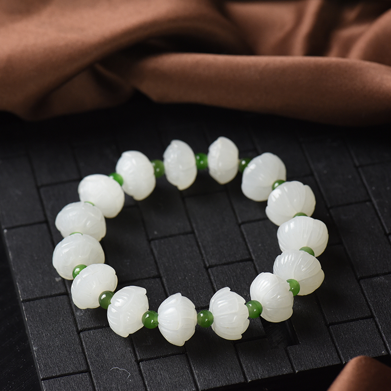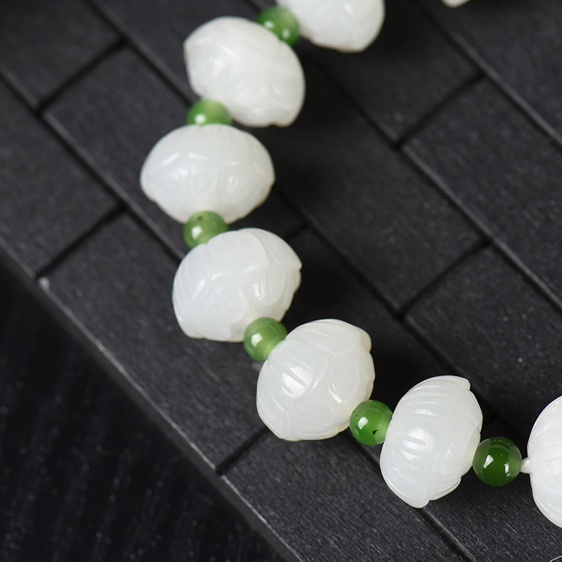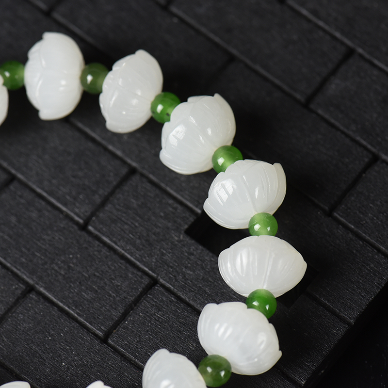 • [名  称] 山料和田羊脂白玉莲花单圈手串
