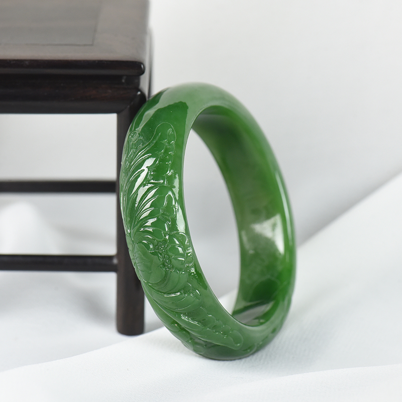 • [名  称] 58.5mm山料和田碧玉花开富贵手镯