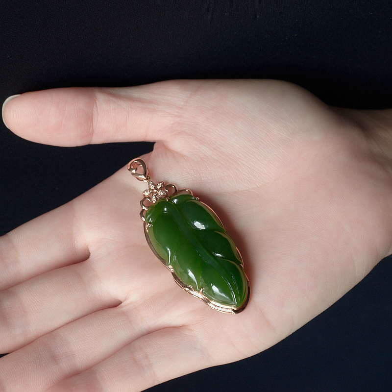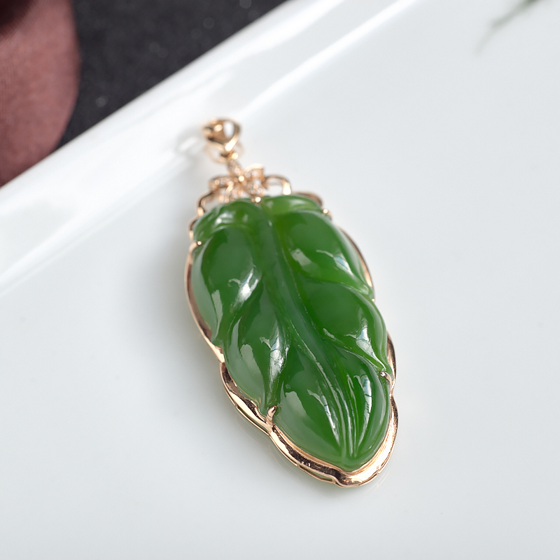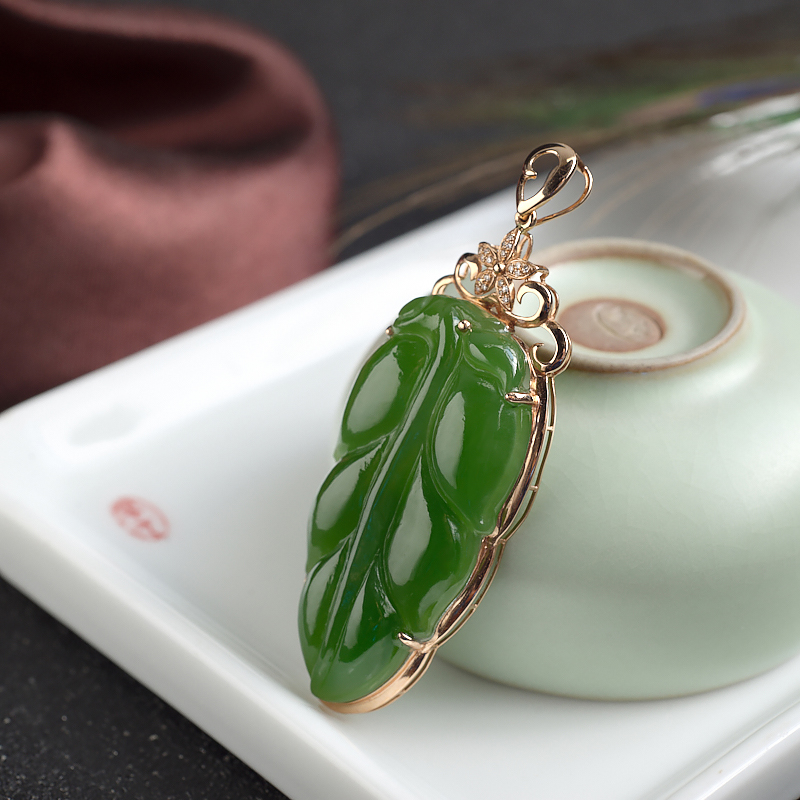 • 18K山料和田碧玉金枝玉叶吊坠