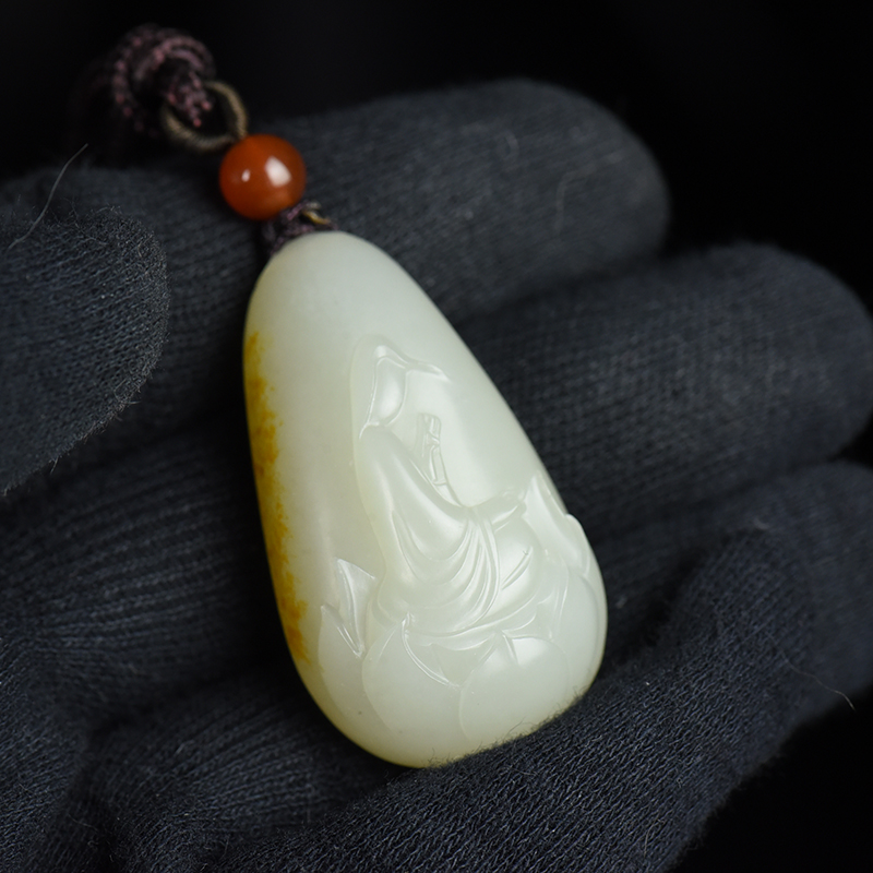 • 籽料和田白玉花开见佛吊坠