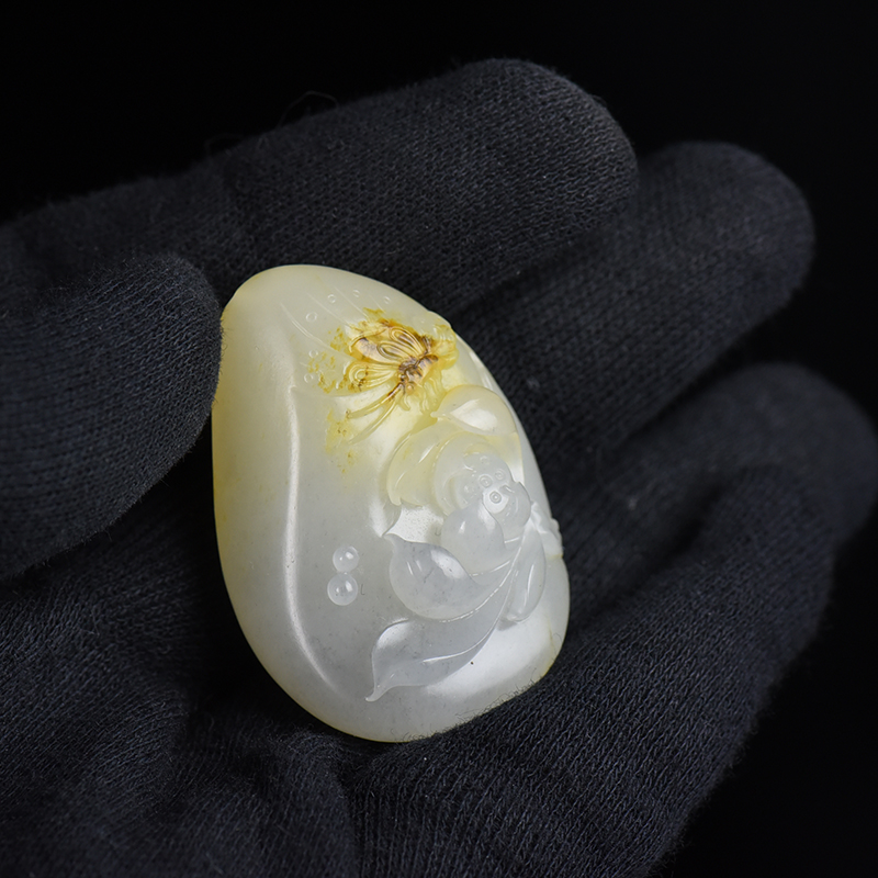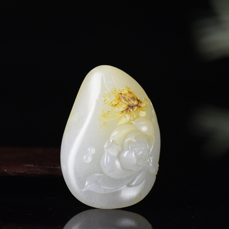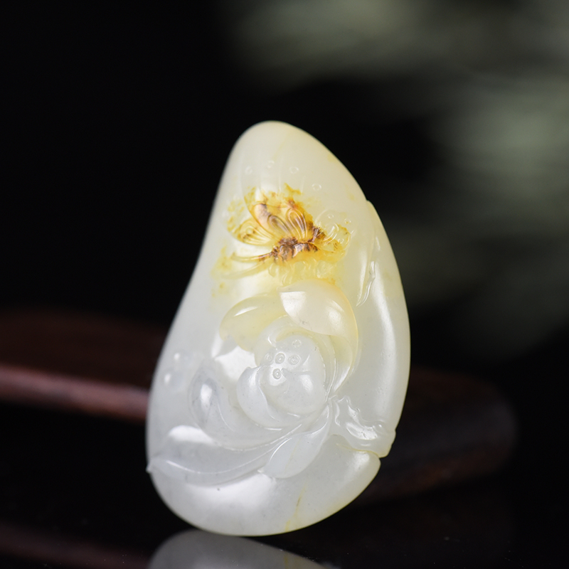 • 籽料和田玉蝶恋花吊坠