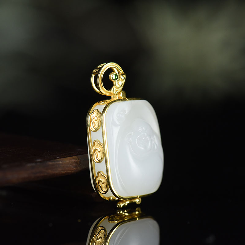 • [名  称] 18K籽料和田白玉弥勒佛吊坠