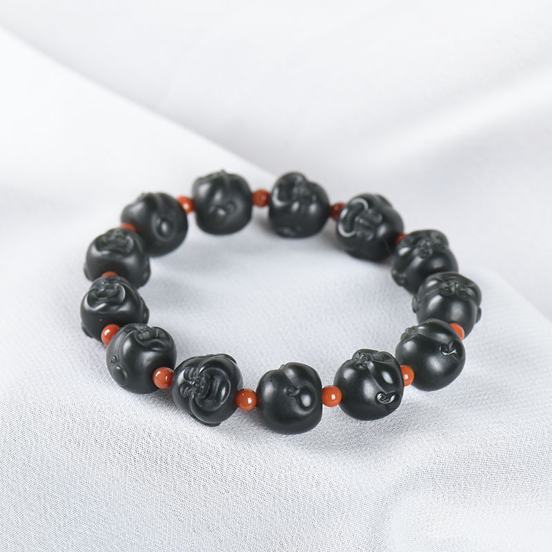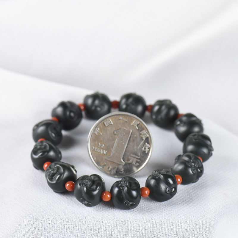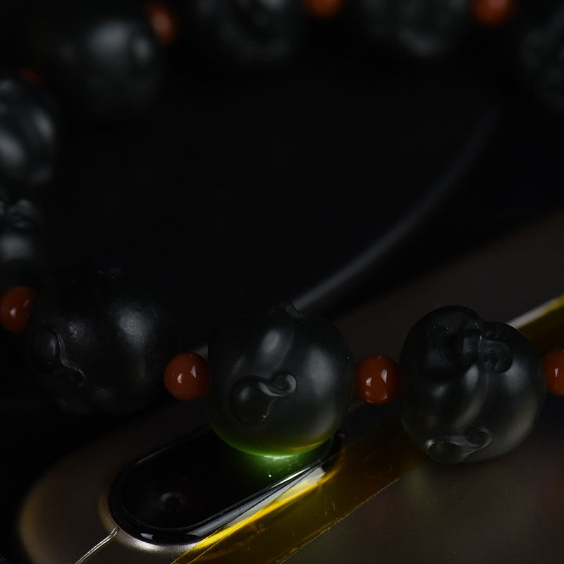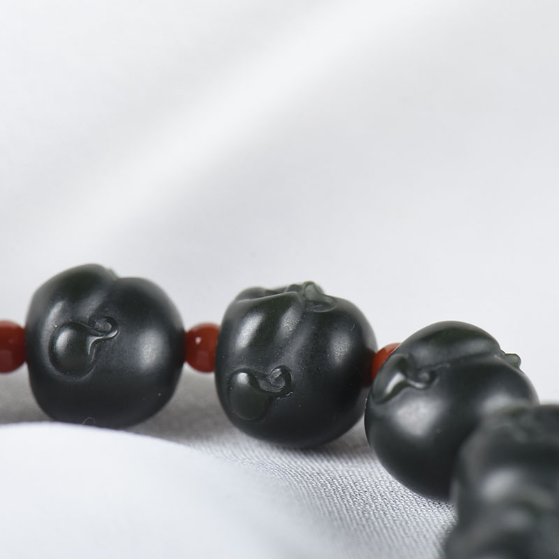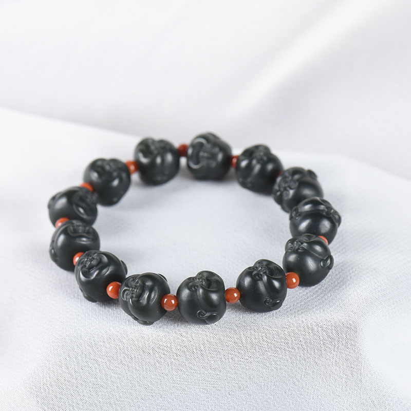 • 山料和田青玉弥勒佛单圈手串