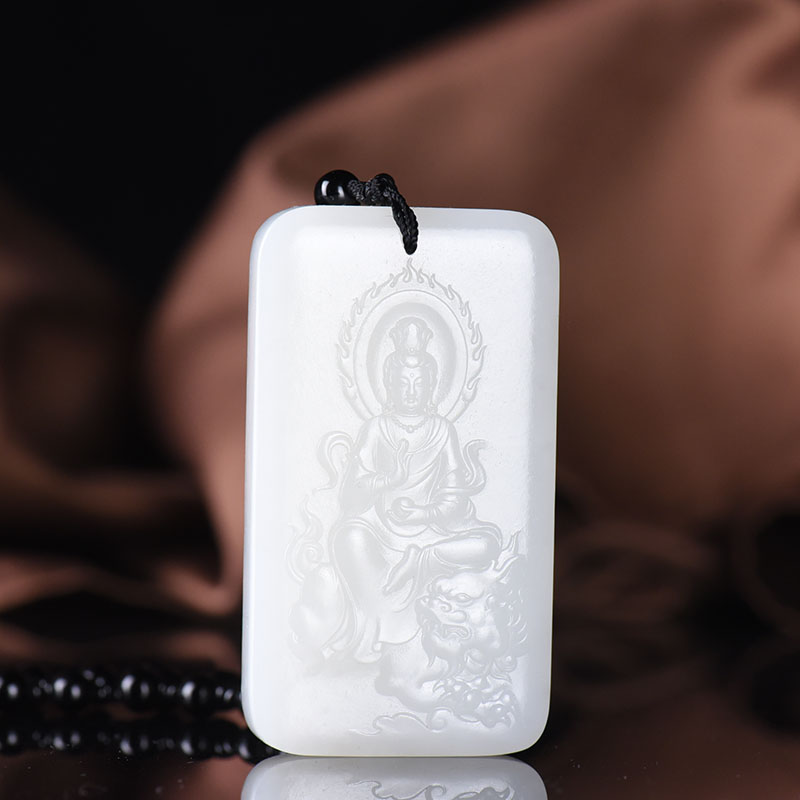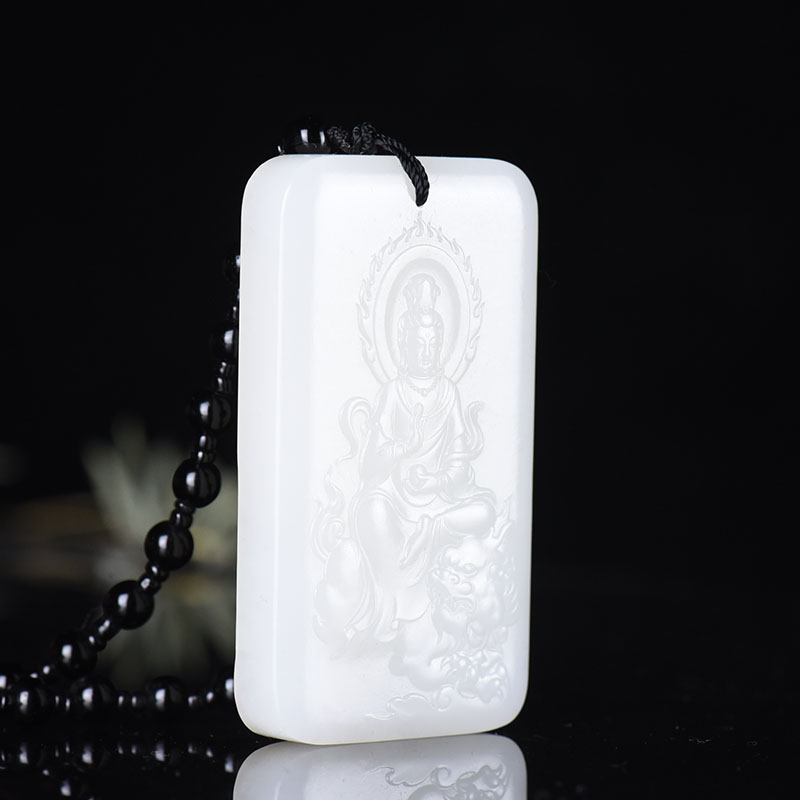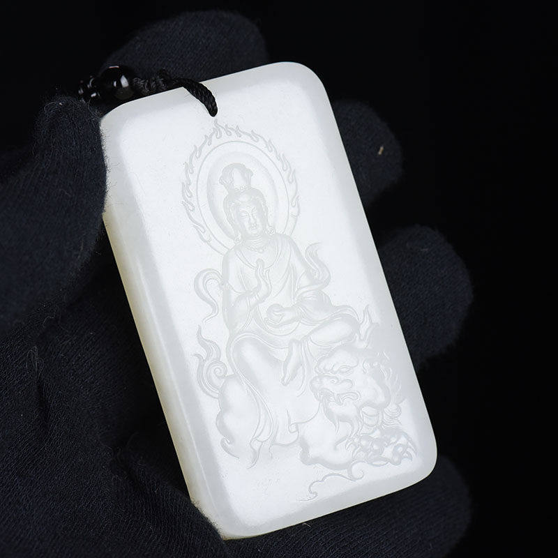 • 山流水料和田羊脂白玉文殊菩萨吊坠