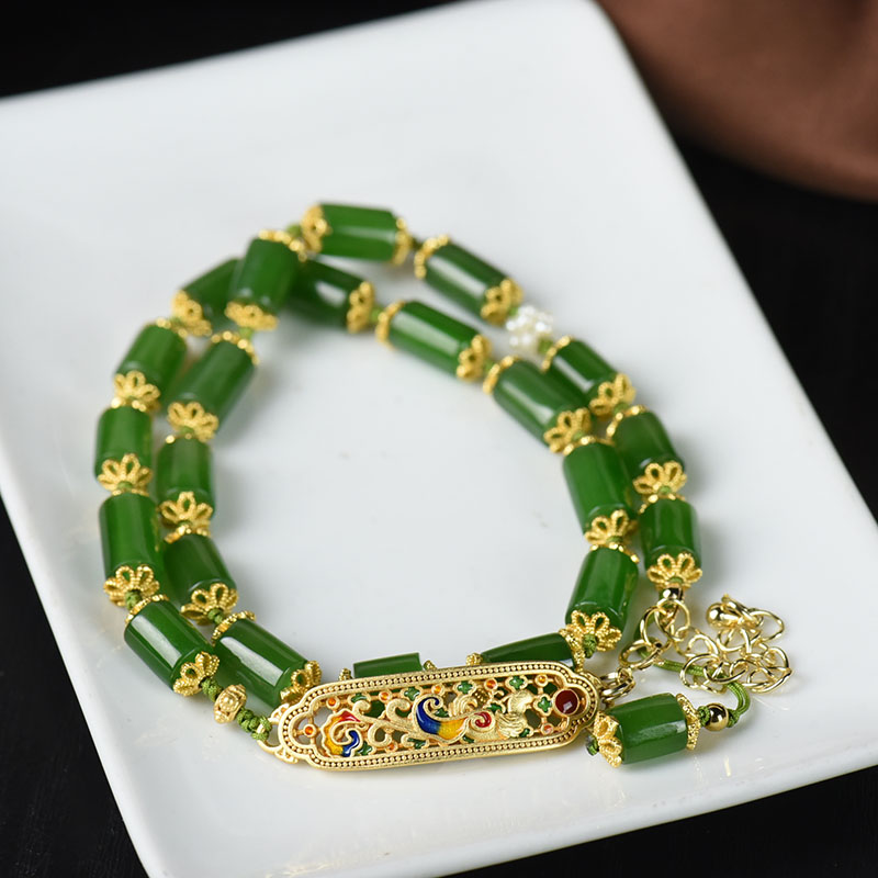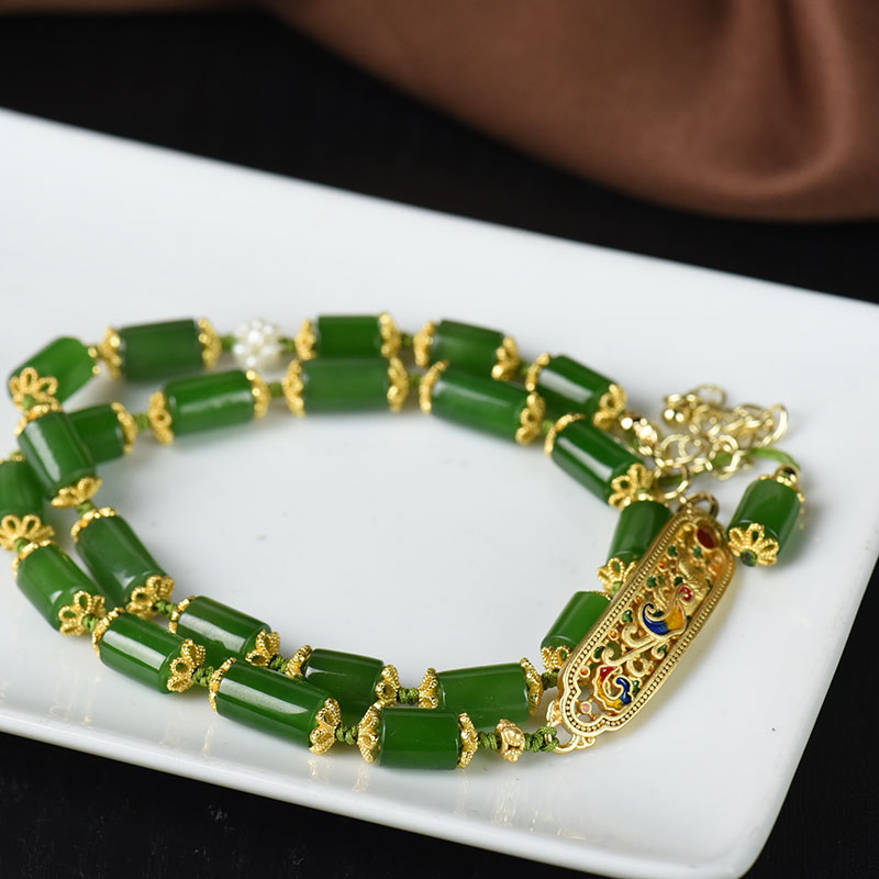 每件宝贝都是天然宝石,佩戴一段时间以后要注意清洁保养。佩戴过程中也要注意不要被硬物碰撞刮擦,避免高温、不要接触酸碱等有腐蚀性的物体以及有机溶剂。这样会让您佩戴的宝贝更漂亮