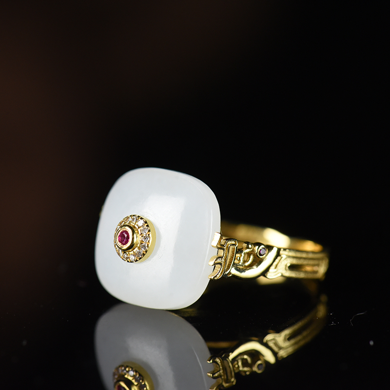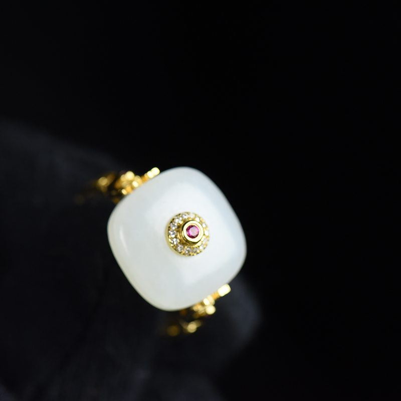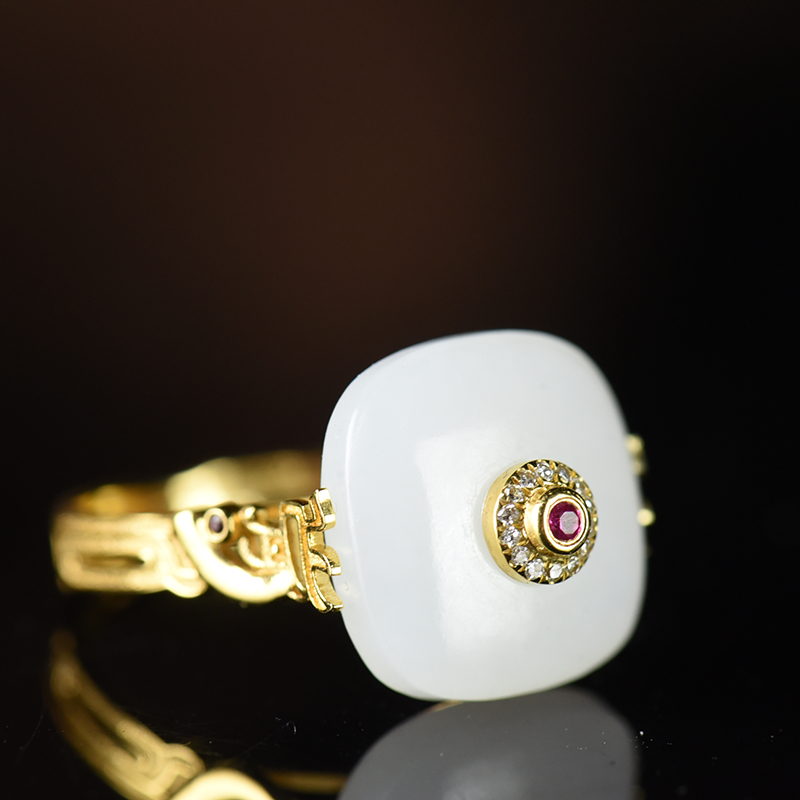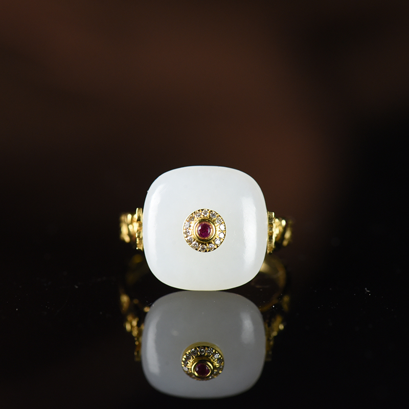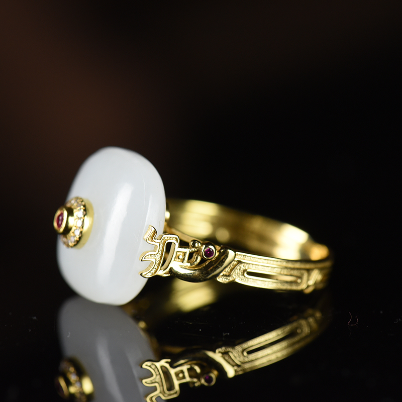 • [名  称] 18K籽料和田白玉平安扣戒指