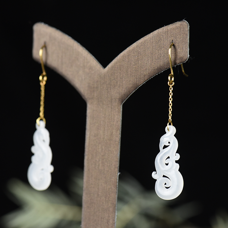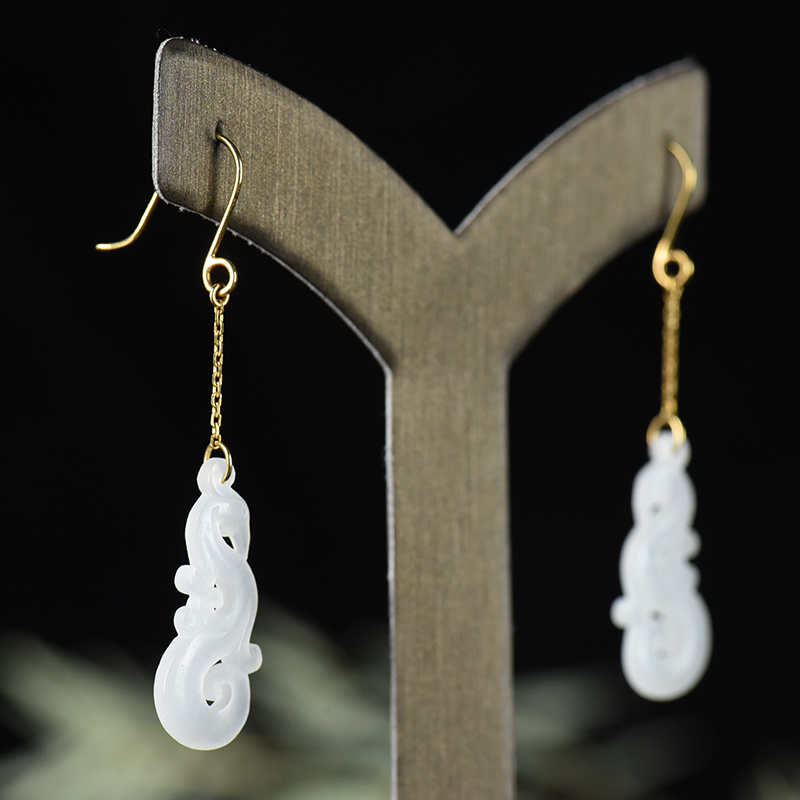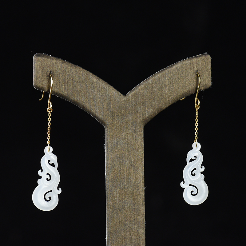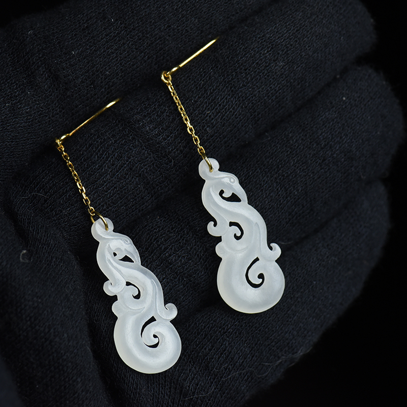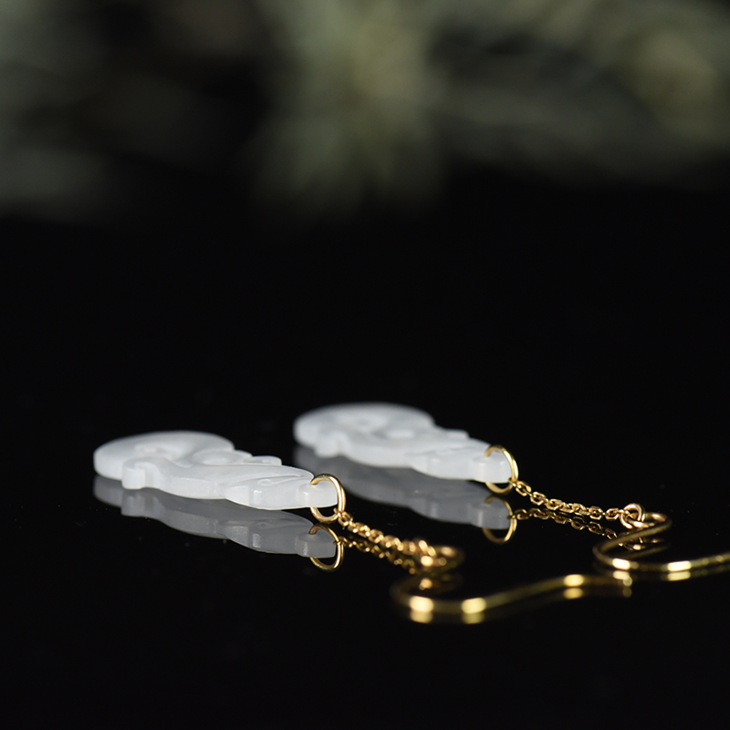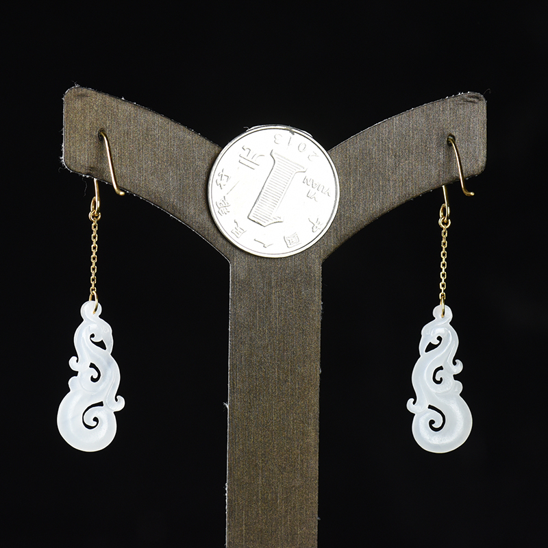 • [名  称] 18K籽料和田白玉凤凰耳坠