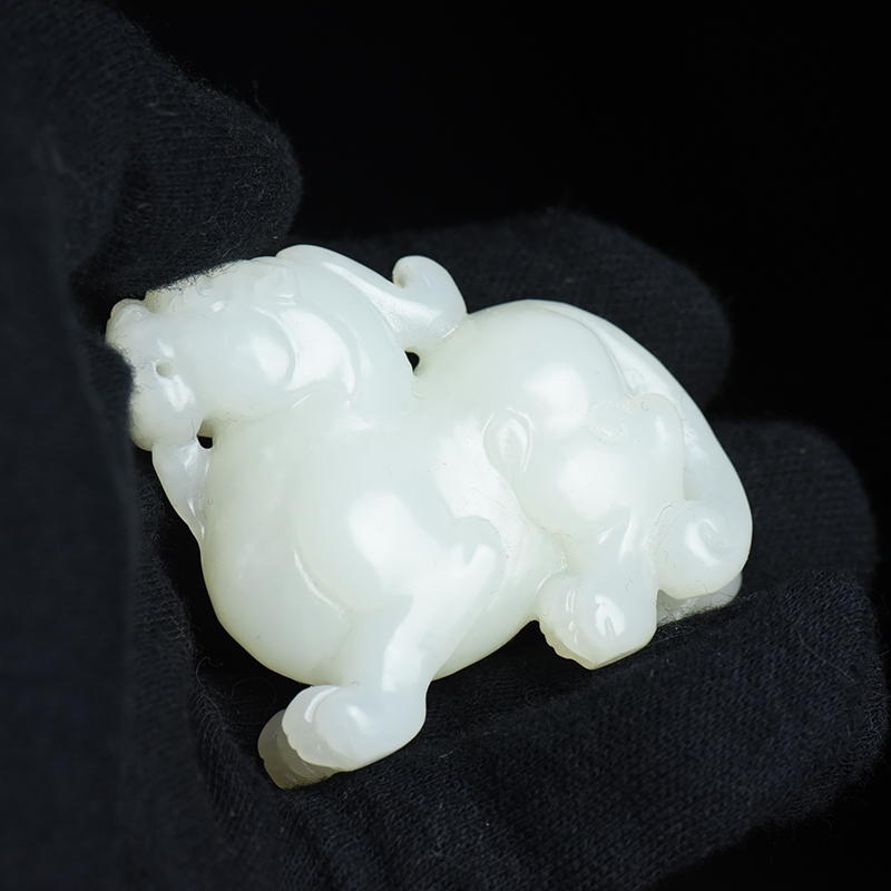• [名  称] 山流水料和田羊脂白玉貔貅手把件