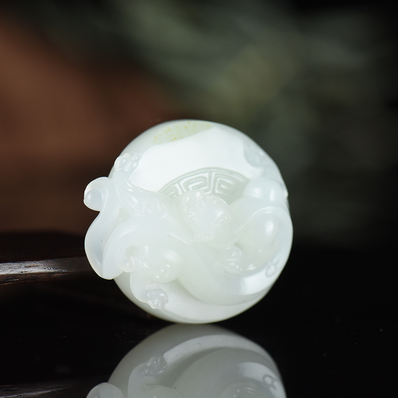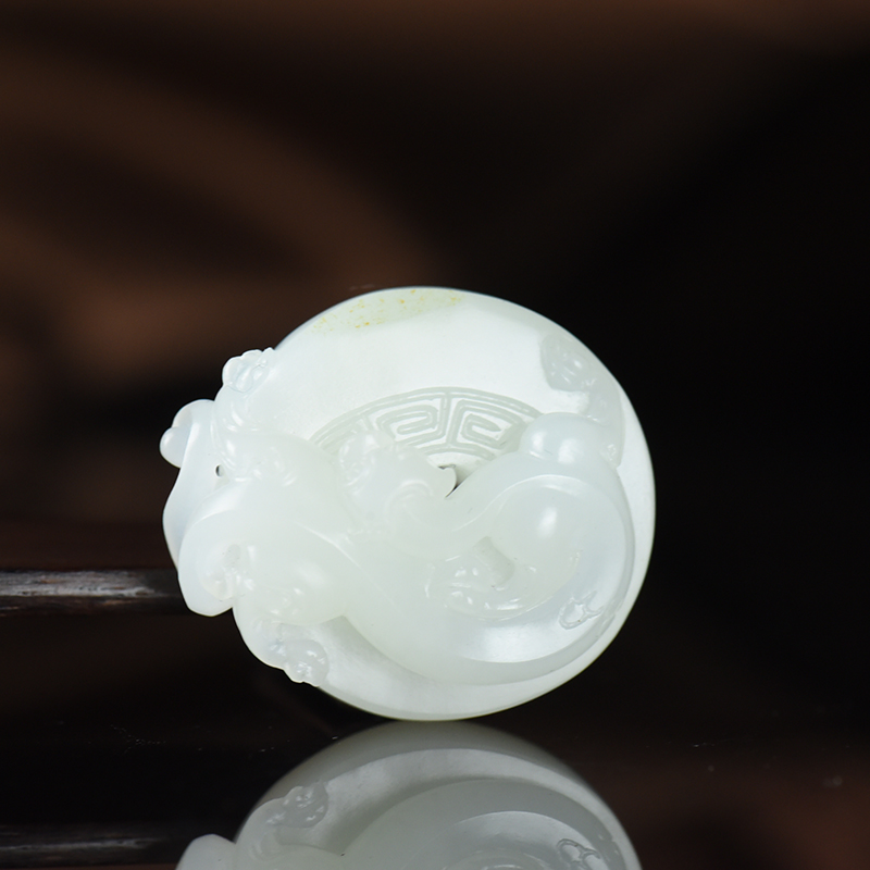 • [名  称] 籽料和田白玉螭龙平安扣吊坠
