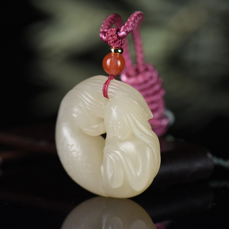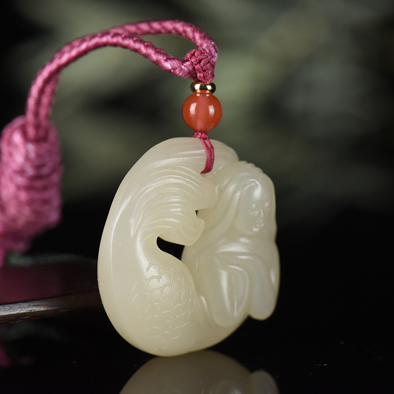 • [名  称] 山料和田玉藕粉色美人鱼吊坠