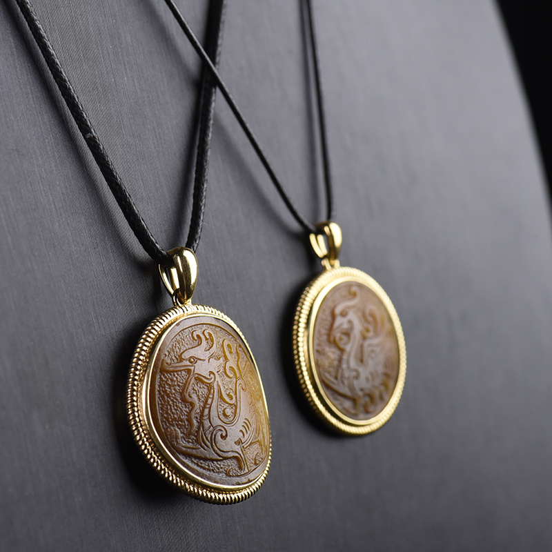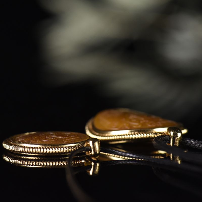 • 18K籽料和田玉黄沁龙凤吊坠(二件)
