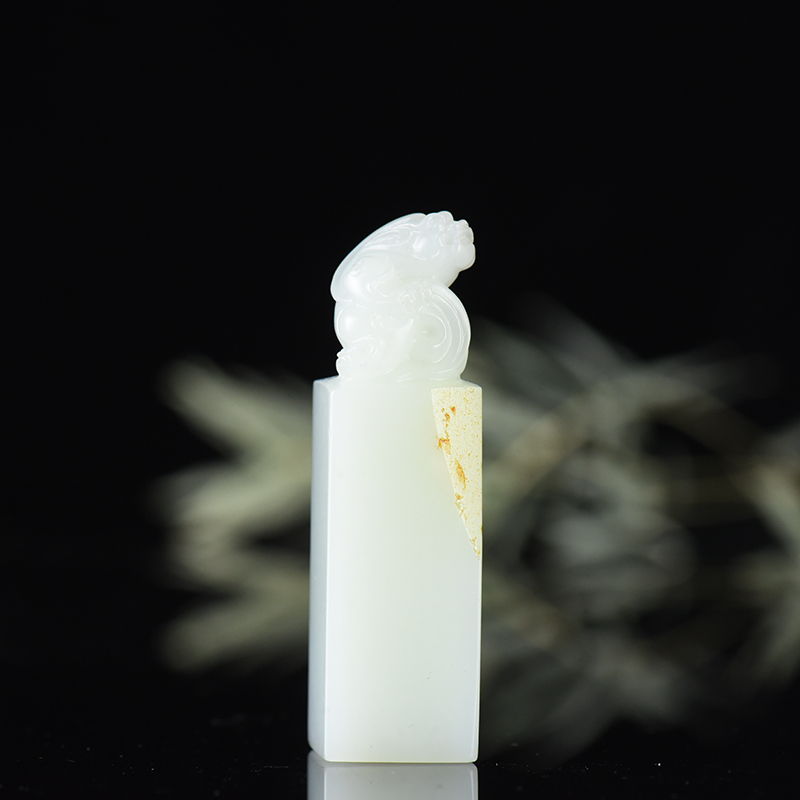 • [名  称] 山流水料和田白玉貔貅印章