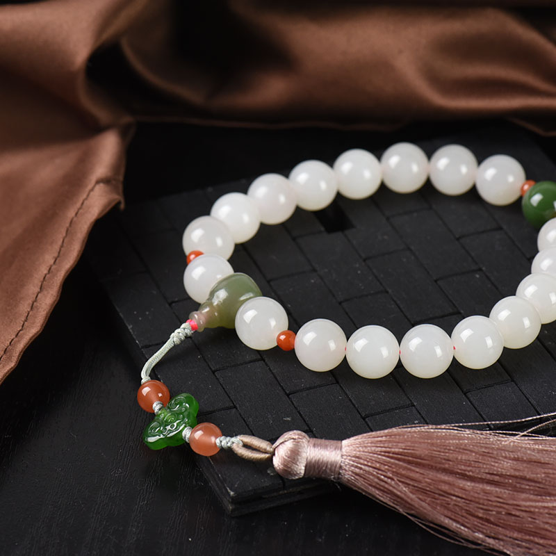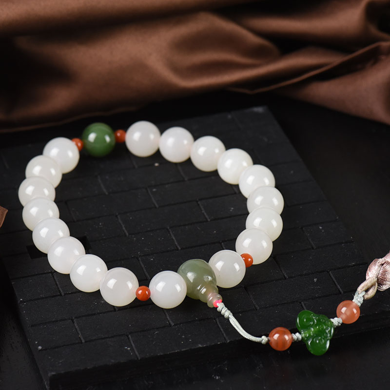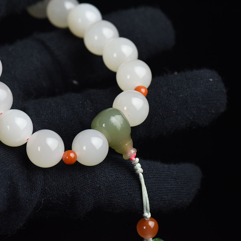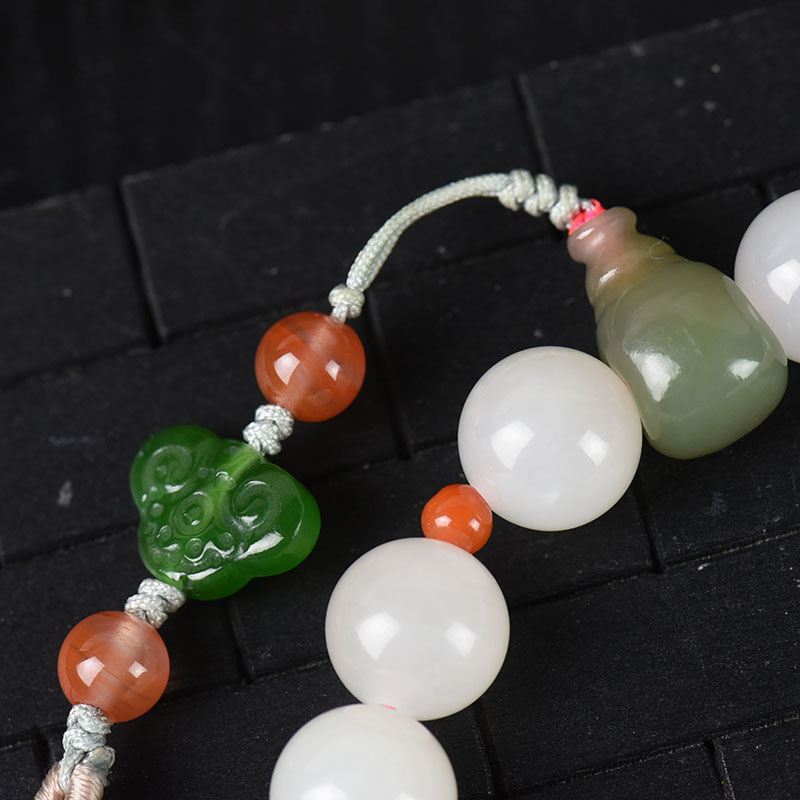 • 12mm山料和田玉藕粉色十八子手持
