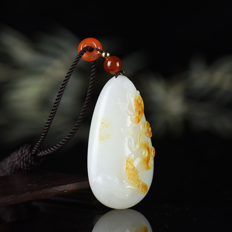 • 籽料和田白玉喜上眉梢吊坠