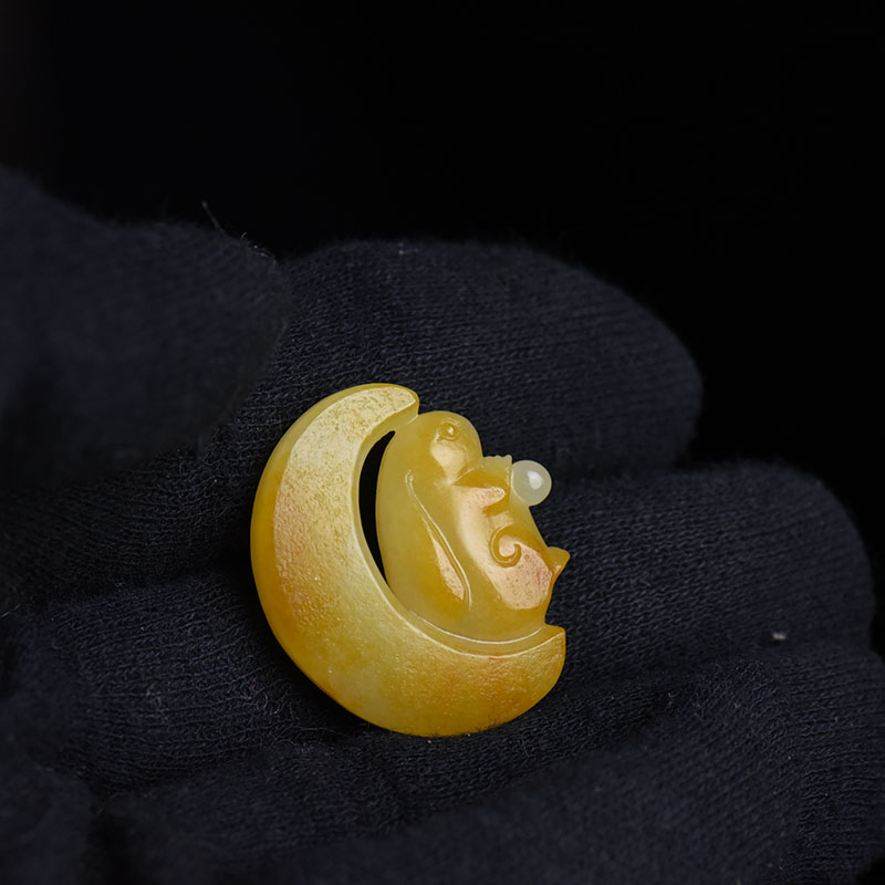 • [名  称] 籽料和田黄皮白玉月兔吊坠