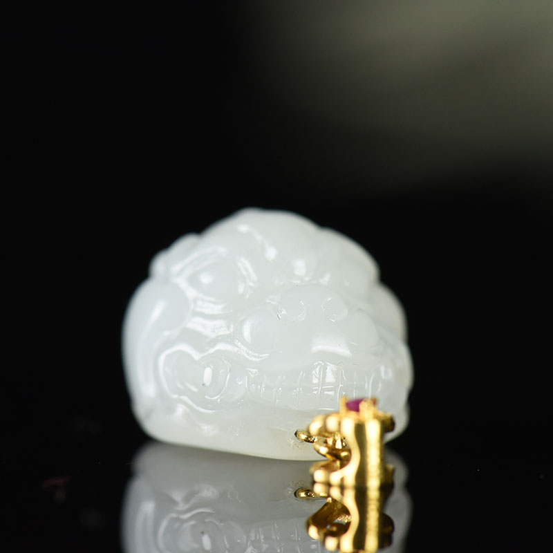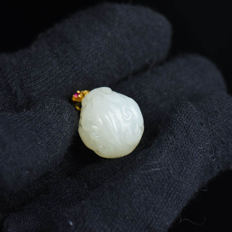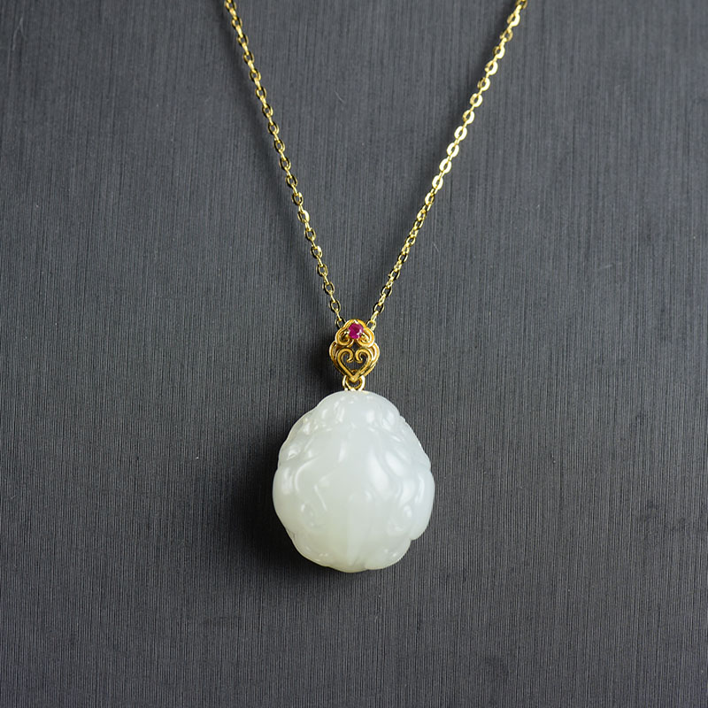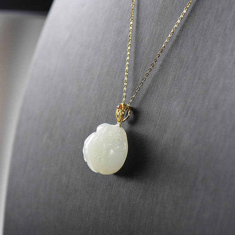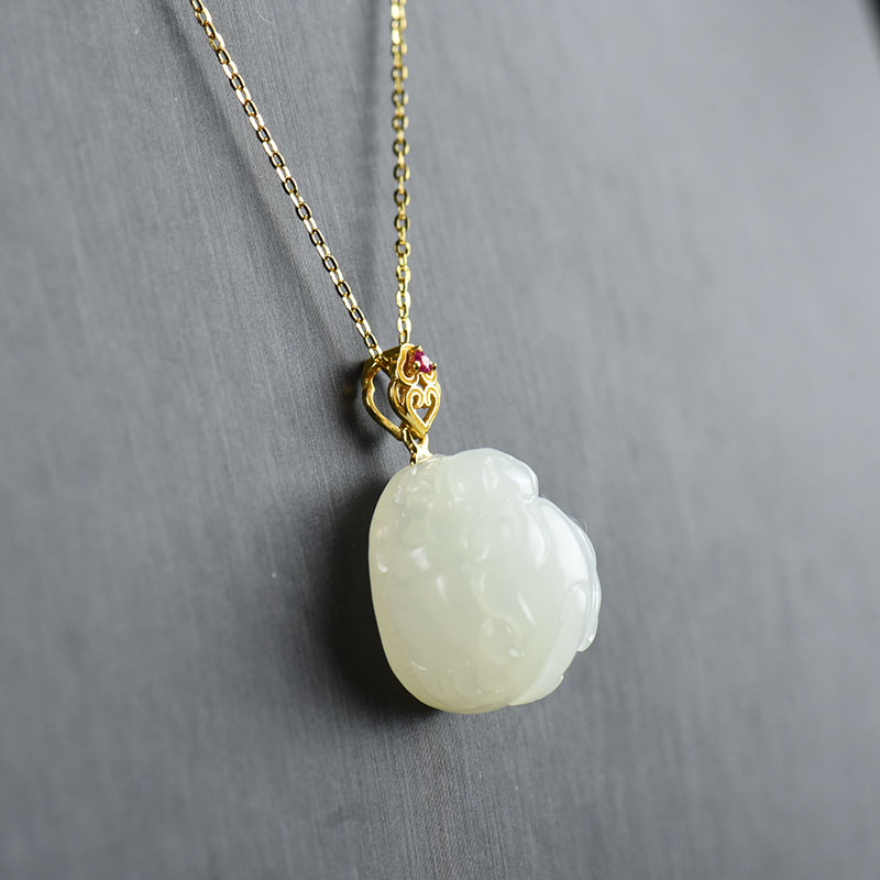 • 18K籽料和田白玉守护吊坠